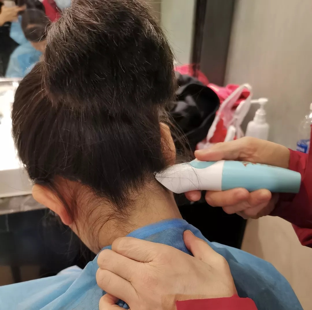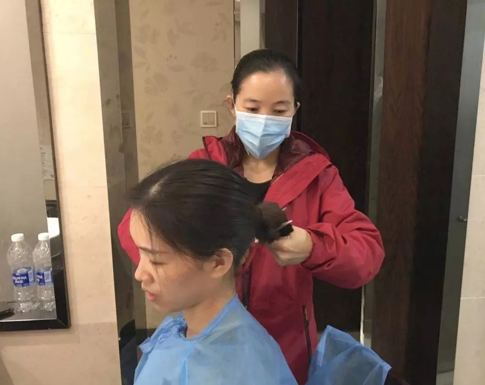 反复练习穿脱防护服时,发现帽子包不住小碎头发,这样会存在感染的危险,没有发胶,夹子也不够,她们决定直接剃掉小碎头发。