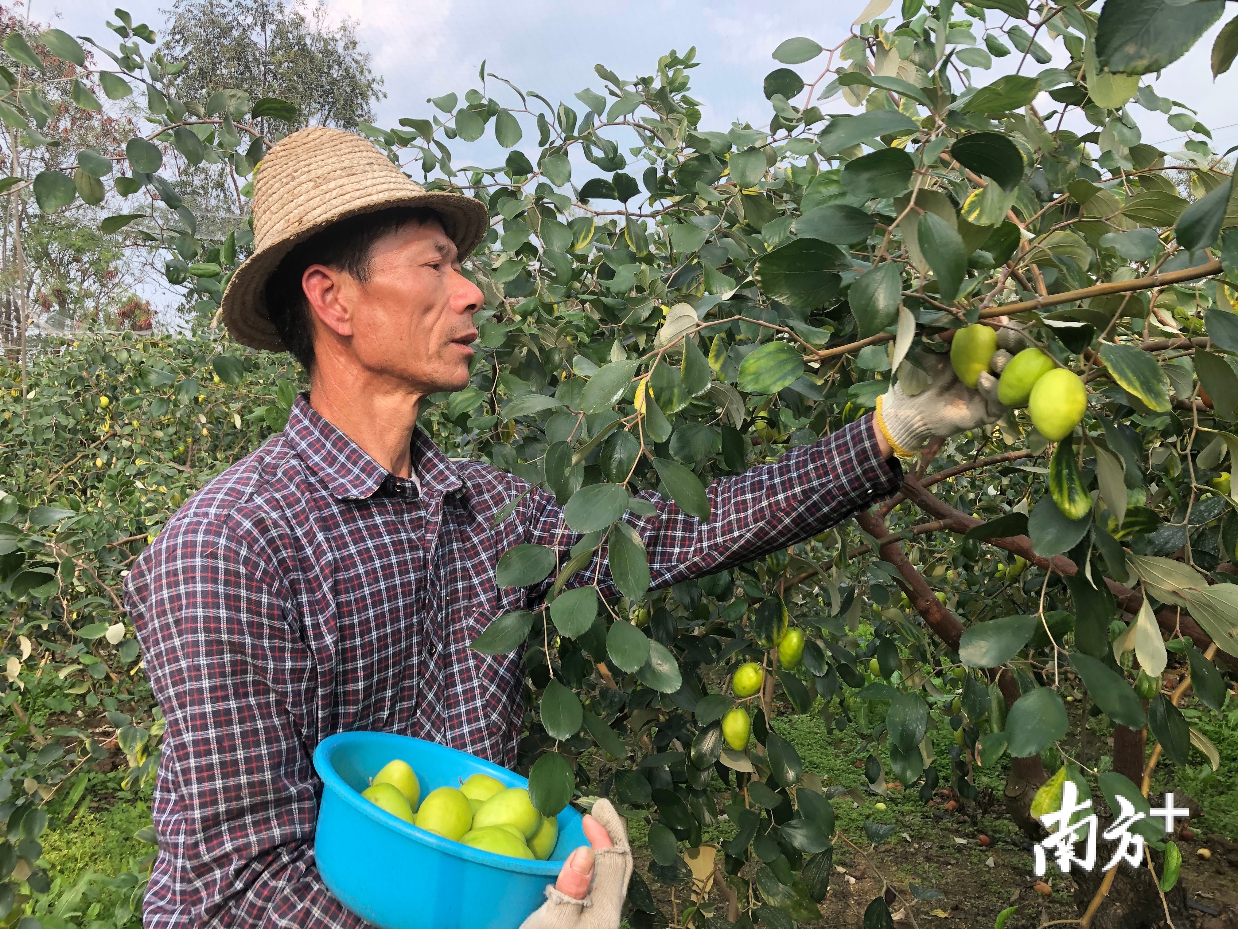 近日,在红海湾经济开发区石古村的种植园内,一派丰收的繁忙景象。碧绿的叶子层层叠叠,工人们正忙着摘枣、清洗、打包、搬运、过称,忙得不亦乐乎。