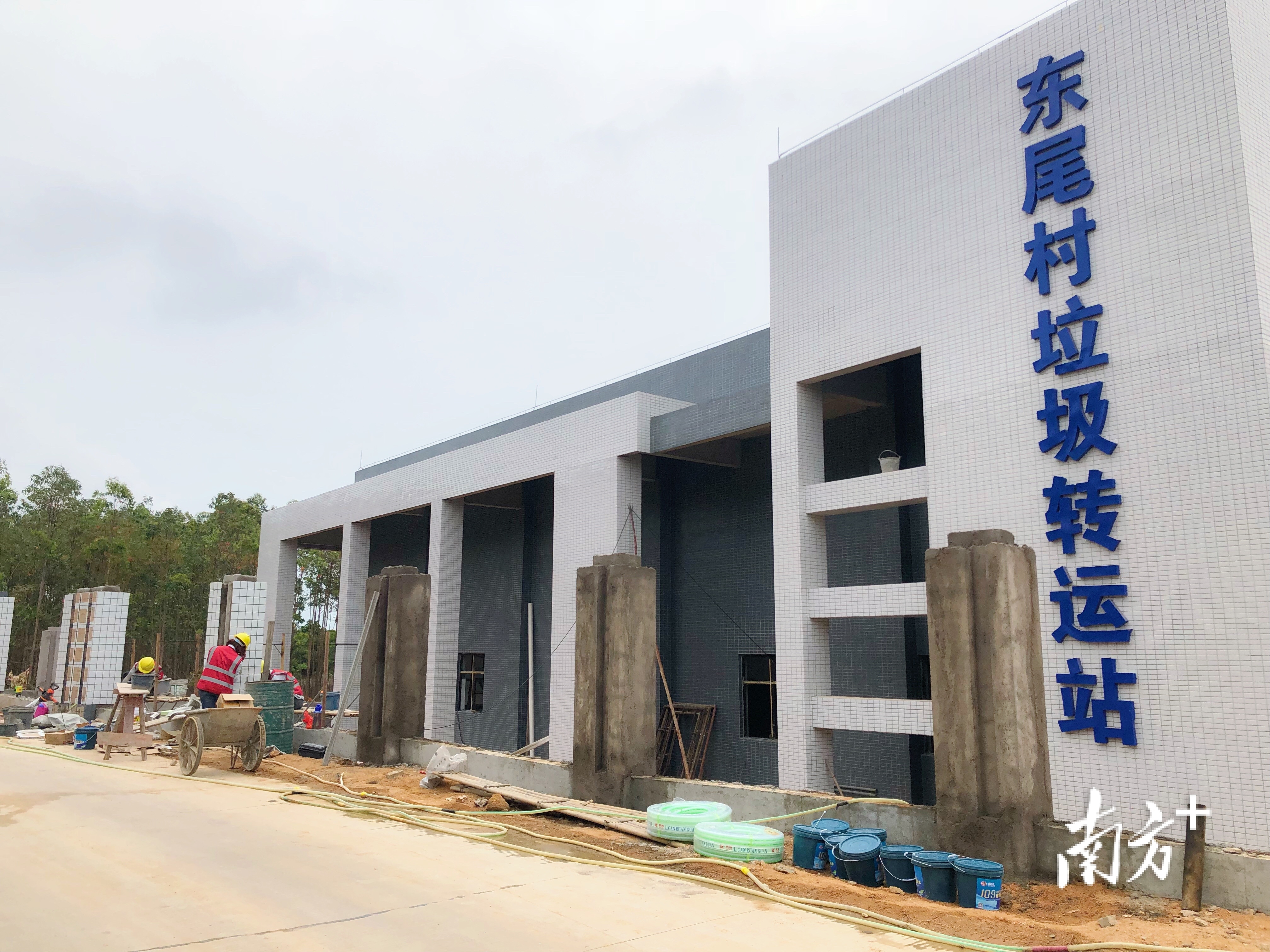 近日,记者来到红海湾开发区遮浪街道东尾村,一幢外墙上有“东尾村垃圾转运站”字样的建筑物映入眼帘,现场工人们正在施工建设,有的砌墙、有的开着挖掘机平整土地……