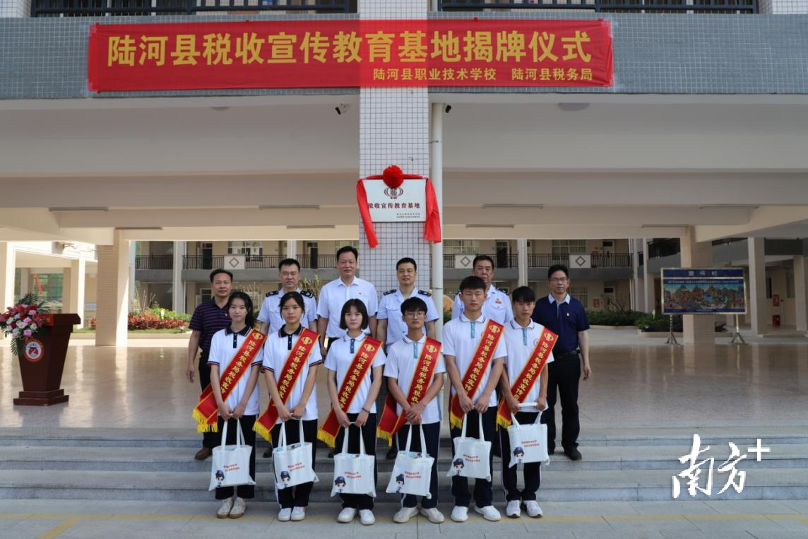 为持续提高税收知识普及的覆盖面和渗透力,近日,由陆河县税务局、陆河县职业技术学校联合共建的“税收宣传教育基地”正式揭牌。