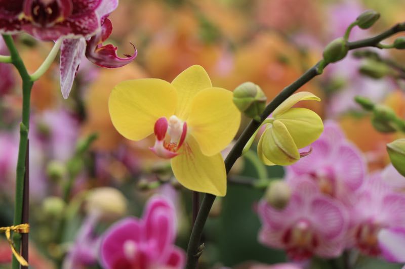 陈村花卉世界的芳姐介绍了市场上比较受欢迎的兰花,粉紫色的小花是“小甜甜”,花型较小比较耐开,主要搭配搪瓷盆;也用组合搭配起来的兰花,比如嫩黄的“朝日”,斑斓的“花蝴蝶”,还有鲜艳“红玛瑙”,层层搭配起来的花色也很受市场欢迎;现在还有一种颜色很特别的“马卡龙”,蓝色的花朵是通过人工染色培育而成,市面上非常少见。还有用兰花搭建的盆栽景观也很受欢迎。