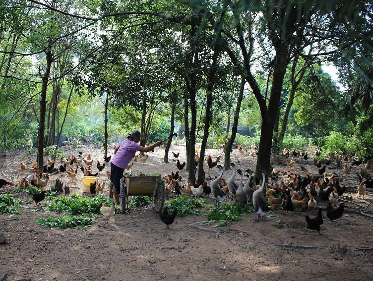 鸡粪可以发酵,做成有机肥,种植剩余的蔬菜也可以当做鸡饲料处理。