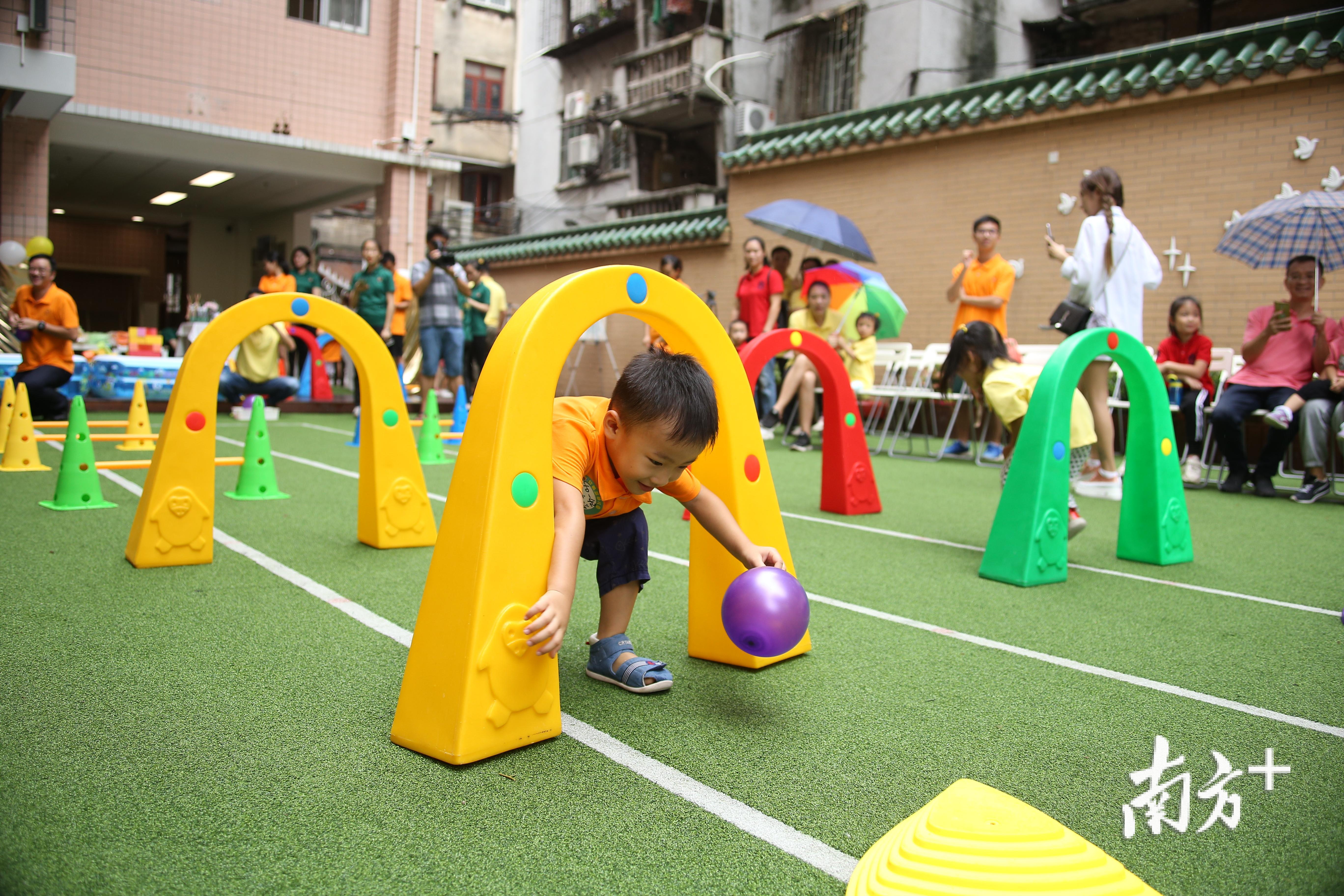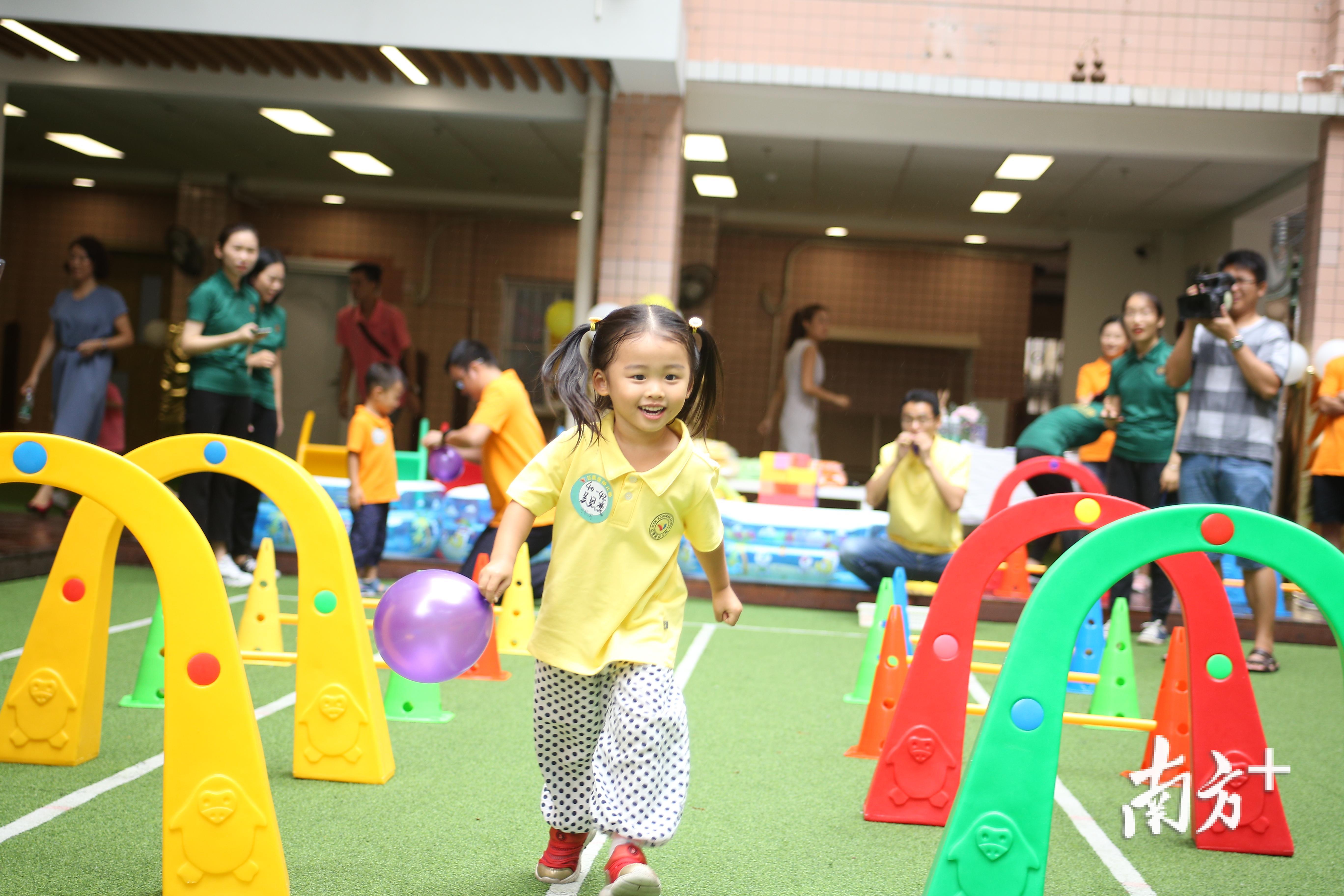 “妈妈,抬腿,抬高一点,往左一点……”开学季还没到,一场“健康宝宝大比拼”活动在广州文德路红黄蓝国际幼儿园内提前展开,数十个31-42月龄的宝宝与爸爸妈妈们一起过关斩将,展现自我。