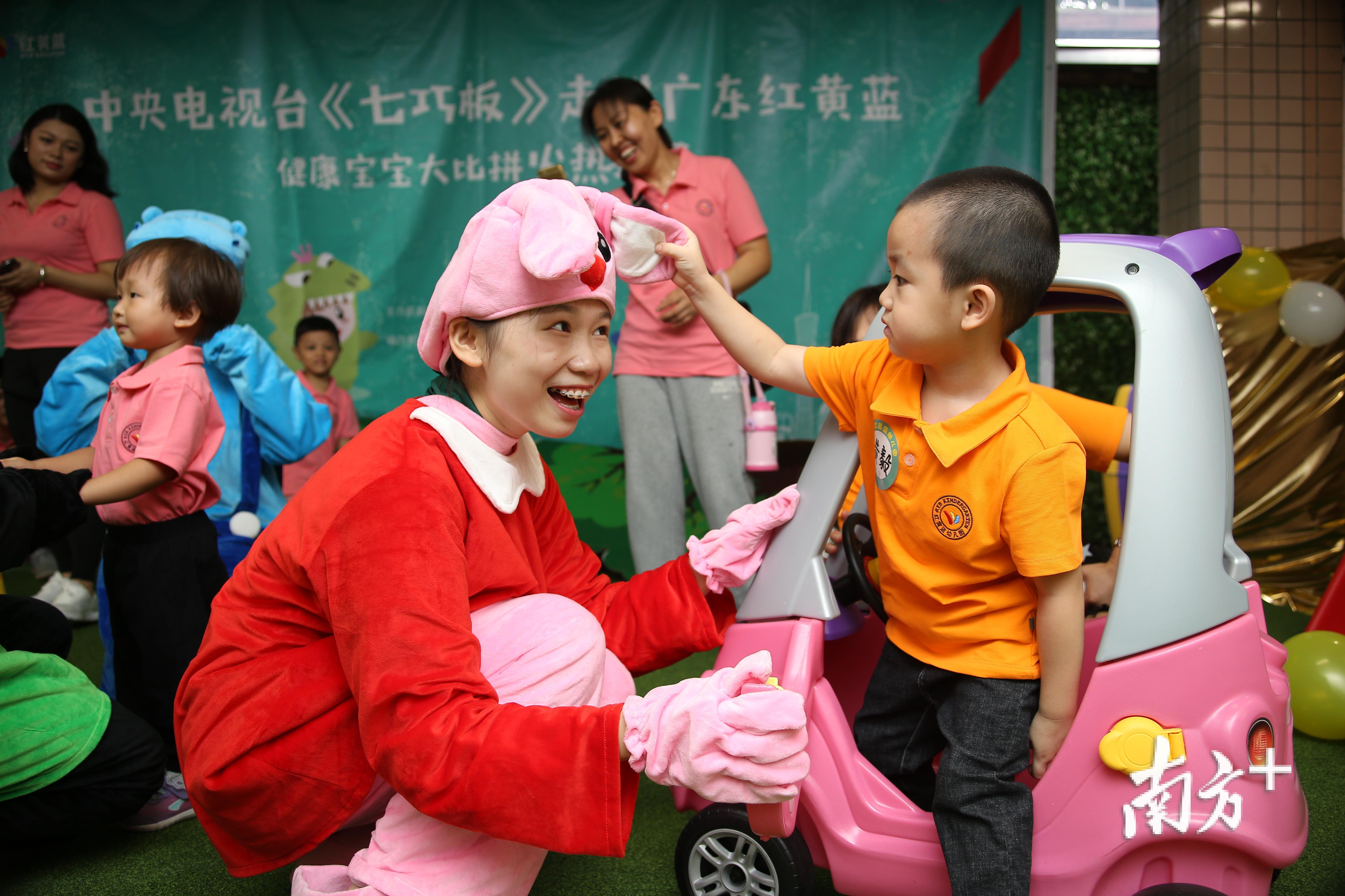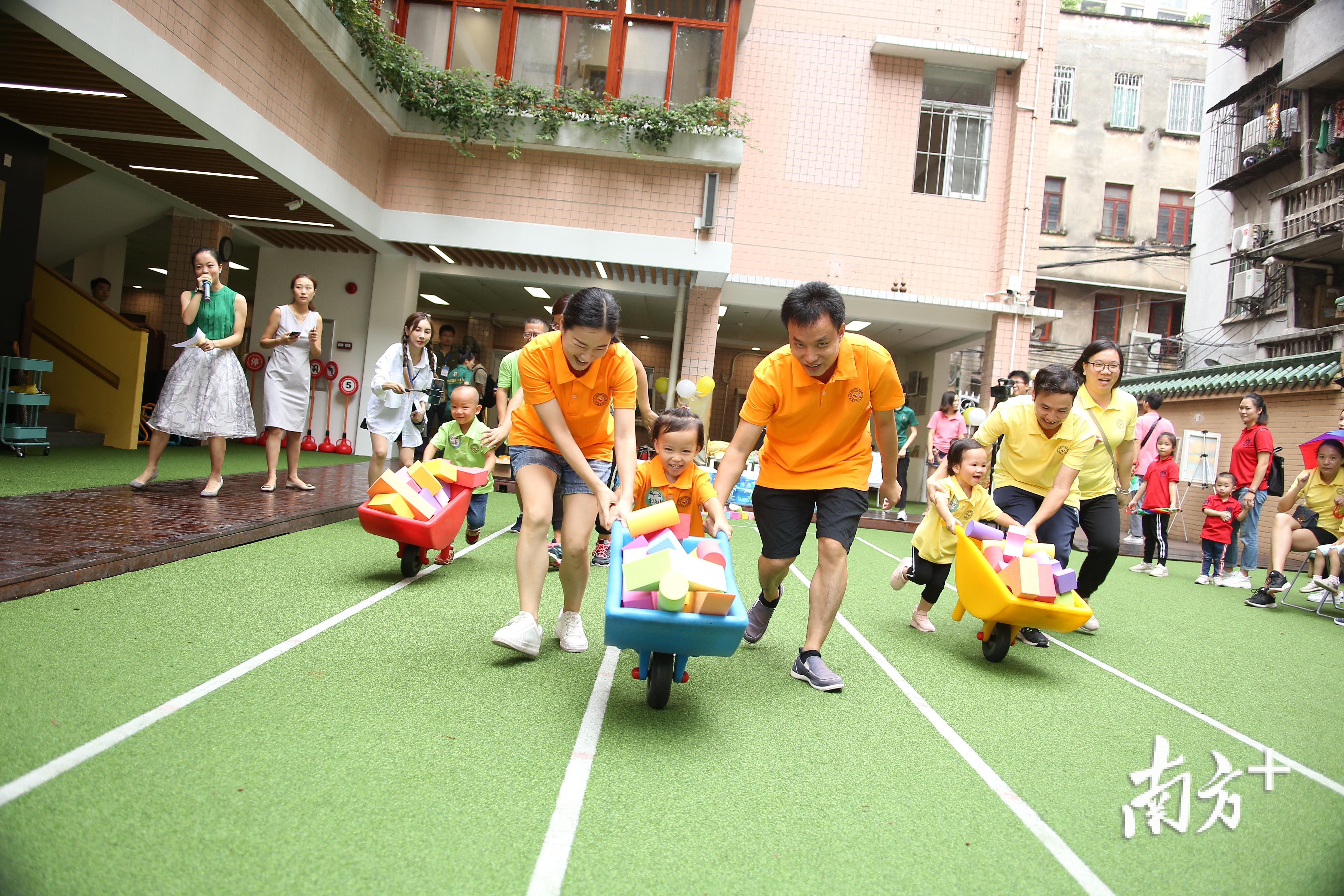 在另一个游戏“搭建广州骑楼”中,参赛家庭各选择一张关于广州骑楼的老照片,然后选择合适的积木装到小推车里,用推车推到指定地点,然后由父母协助宝宝搭建骑楼模型,在规定时间内搭得最传神的家庭获胜。虽然不到3岁的宝宝们还不太能理解整个游戏过程,但他们在游戏中体现的审美能力、创造力和热情都触动了现场评委。