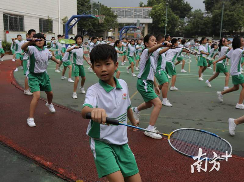 伴随着动感活泼的音乐,师生们精神抖擞地列队出场,向现场嘉宾表演自编的羽毛球操,接、挑、扣、拨等动作轮番上阵。27日,中国教育科学研究院基础教育研究所专家团队来到广东省羽毛球传统项目学校葵蓬小学进行深度调研,师生们展现了高超的羽毛球水平。