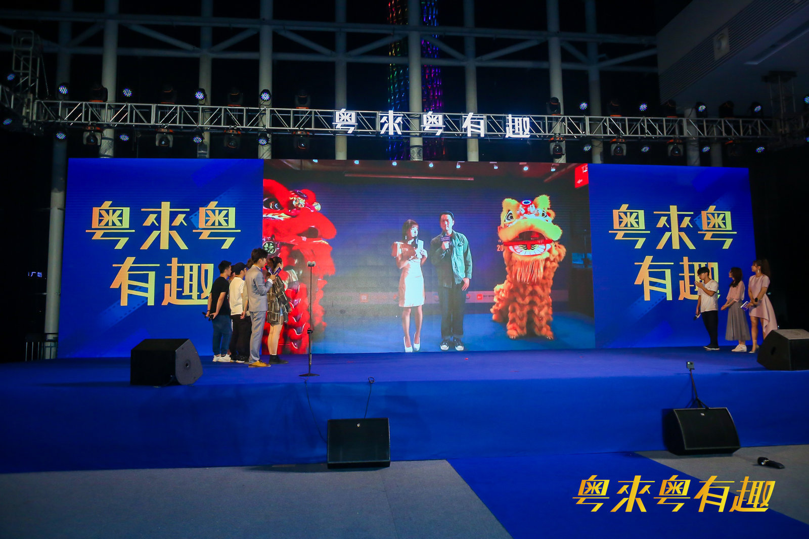 舞台上,灯光绚烂多姿、光彩陆离,两岸青年载歌载舞,粤语歌手燃情放歌“粤来粤有趣”主题曲,晚会高潮迭起,生机与朝气满满~