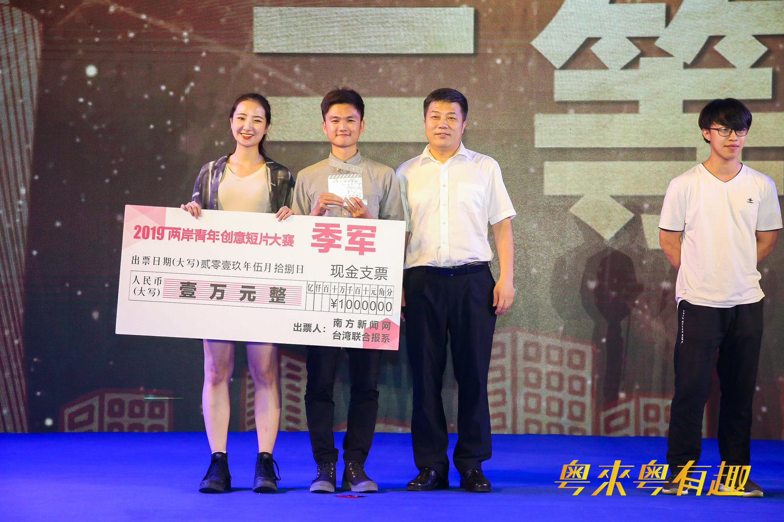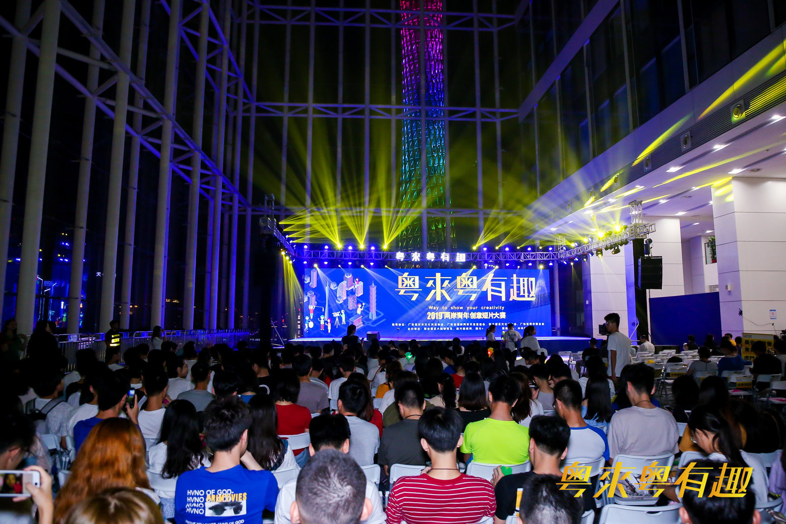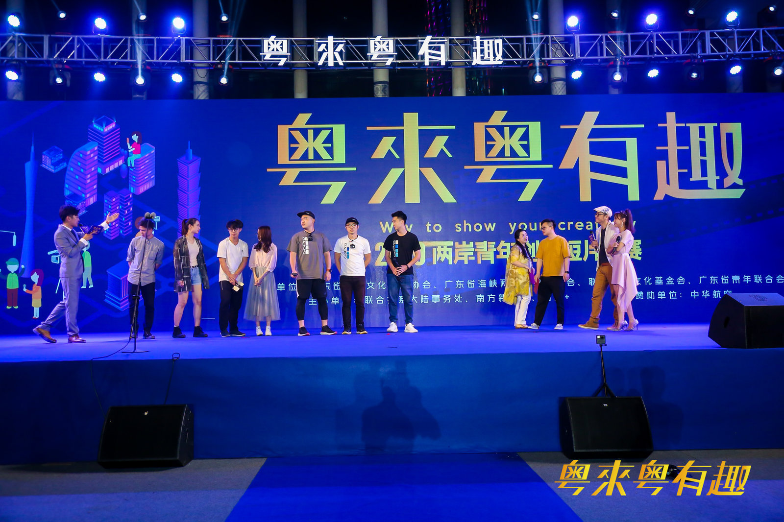5月18日晚,2019“粤来粤有趣”两岸青年创意短片大赛在广州国际媒体港举行“决赛之夜”大型颁奖典礼暨两岸青年交流晚会。