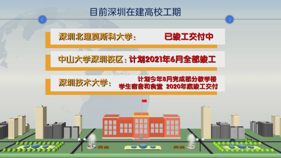 其实深圳在建的大学,目前还有好几所。最后一起来看看中大深圳校区的全面竣工时间,以及其它在建高校的进度: