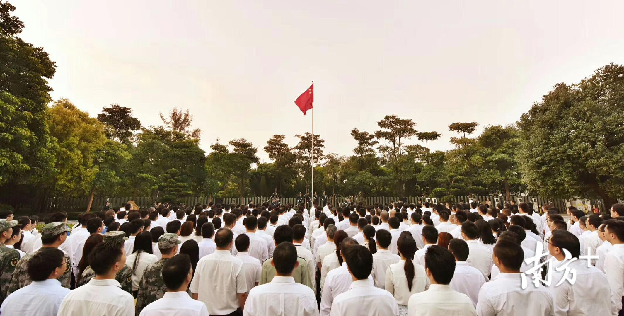 10月1日清晨6:30,坪山区委区政府在政府大院广场举行庆祝中华人民共和国成立70周年升国旗仪式,区委书记陶永欣、区长李勇等区几套领导班子成员,区直各单位、各街道主要负责人,区属企业主要负责人及干部代表等参加升旗仪式。