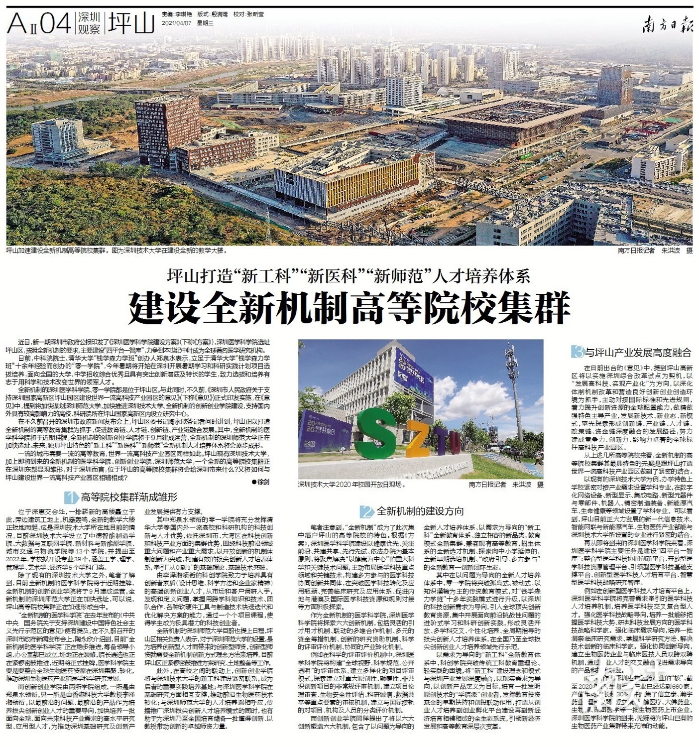 在不久前召开的深圳市政府新闻发布会上,坪山区委书记陶永欣答记者问时讲到,坪山正以打造全新机制的高等教育集群为抓手,促进教育链、人才链、创新链、产业链融合发展。其中,全新机制的医学科学院将于近期挂牌,全新机制的创新创业学院将于9月建成运营,全新机制的深圳师范大学正在加快选址。未来,独具坪山特色的“新工科”“新医科”“新师范”全新机制人才培养体系将会逐步成形。