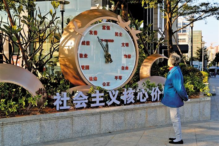 近日,市民群众惊喜地发现,马田街道钟表基地又新增了一处风景——“社会主义核心价值观”二十四字时钟,“富强 民主 文明 和谐 自由 平等 公正 法治 爱国 敬业 诚信 友善”二十四字格外亮眼,来往市民群众纷纷驻足“打卡”拍照留念。