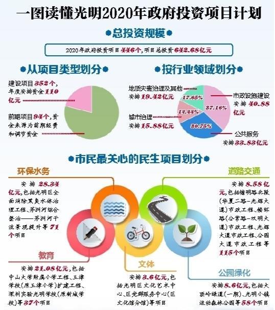 据悉,光明区当前正处于建设世界一流科学城和深圳北部中心的关键时期,2020年政府投资项目计划旨在进一步抢抓建设“双区驱动”重大机遇,聚焦市场不能有效配置资源的生态环境保护、公共基础设施、城市治理等公共领域项目,发挥政府投资资金的引导和带动作用,促进经济社会平稳健康发展,确保“十三五”规划顺利收官。