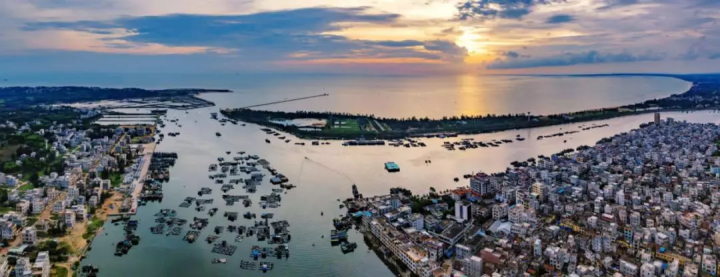 碧海蓝天、椰风海韵、落日晚霞、归帆点点构成渔港一幅美丽的图画。