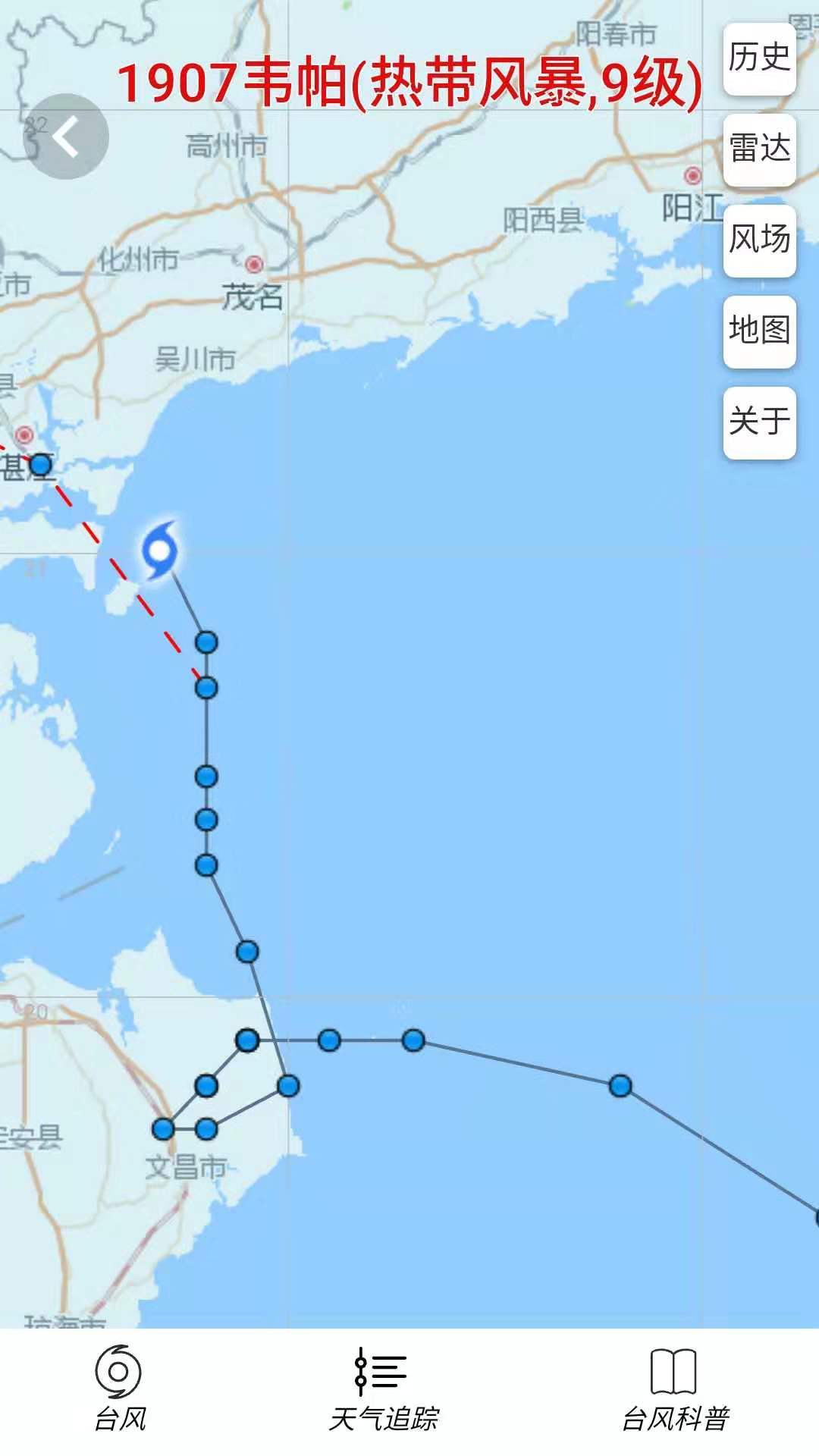 预计,未来24小时内“韦帕”将以每小时10-15公里的速度向西北方向移动,即将在湛江附近沿海地区登陆。