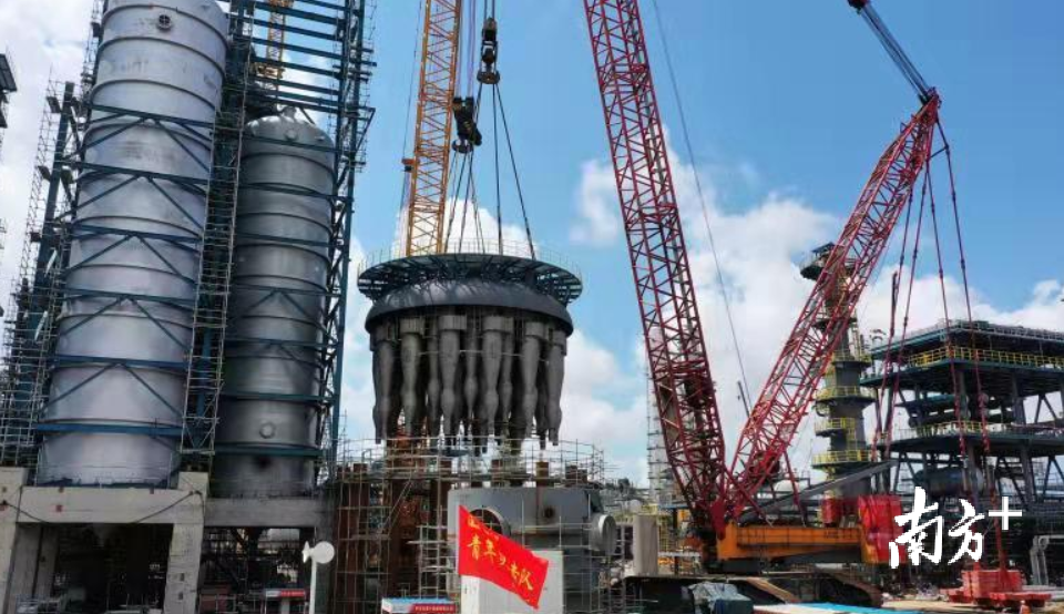 9月11日下午6时,中科炼化核心装置之一、420万吨/年催化裂化装置“心脏”设备——再生器封头成功吊装就位,至此,该装置核心设备“两器”(沉降器、再生器)全部顺利封顶。
