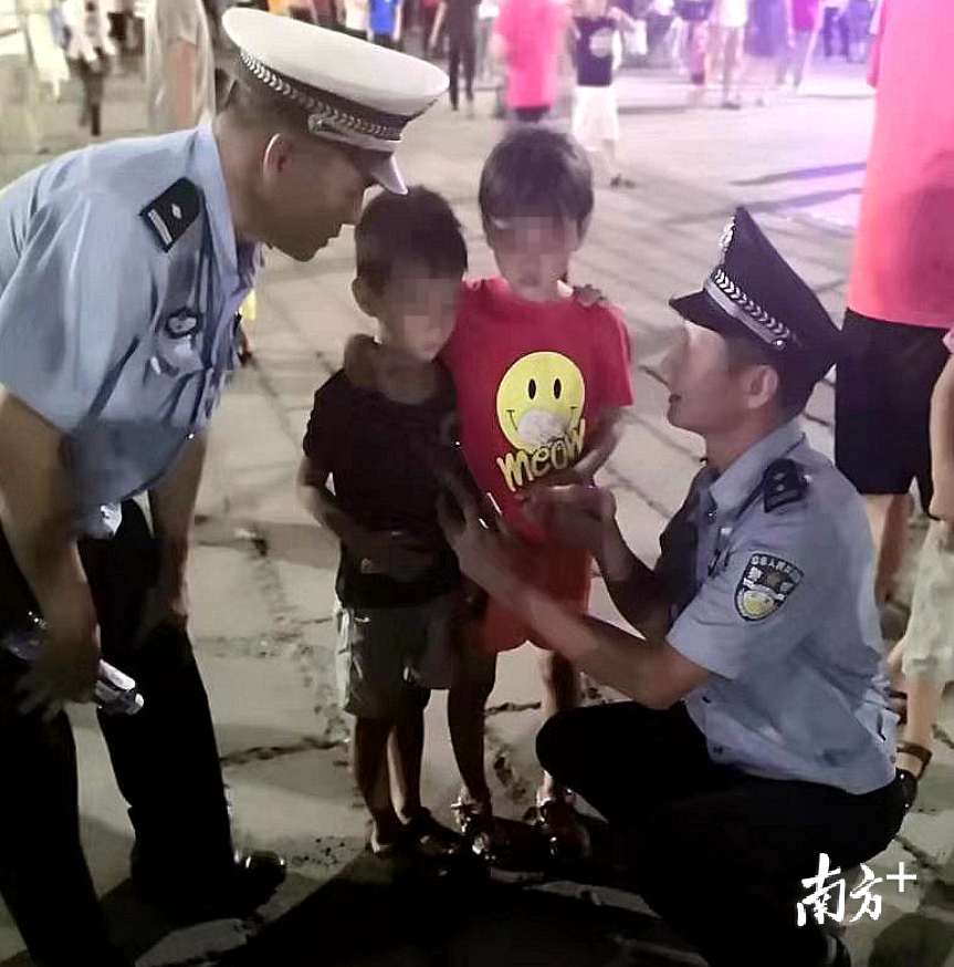 “小朋友,别哭别害怕,我是警察叔叔,有什么事你告诉警察叔叔,你爸爸妈妈呢”,10月1日晚上8时40分左右,遂溪县公安局交警大队大队长易伟强带队在孔子文化城执勤时,发现两名小孩在路边哭泣,易伟强当即蹲下安抚小孩情绪,了解相关情况。