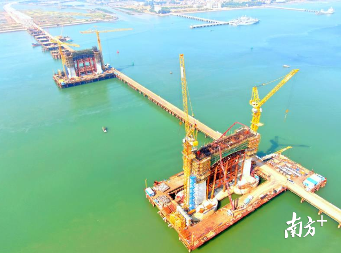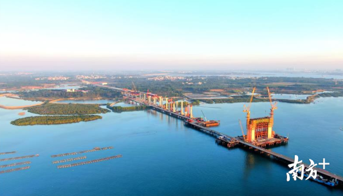 11月23日,由中铁大桥局承建的湛江调顺跨海大桥91号主塔下横梁开始混凝土浇筑,标志着大桥主塔施工迈入新台阶,以“风调雨顺,湛江红门”为寓意的调顺跨海大桥已初现轮廓。这座堪称“颜值与内涵”并存的桥梁,建成后将成为湛江湾上的地标式建筑。