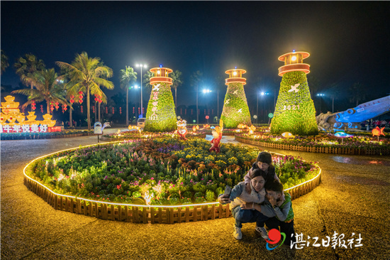 渔港公园门前的大型园林灯饰吸引人们合影。