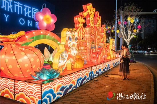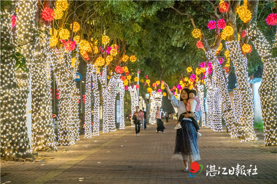 华灯初上,霞山观海长廊和赤坎金沙湾一带,流光溢彩的灯饰显得格外喜庆;在广湛路口、时代广场等地,设计别出心裁的主题灯展造型独特,点亮夜空。不少细心的居民最近也发现,市区各条道路的彩灯焕然一新,喜庆的红灯笼映衬出十足的年味儿。市区小游园里通过树上挂件、地插灯、频闪灯等来烘托街头之美,让城区处处洋溢着浓郁的节日气氛。市民们纷纷走上街头,在灯光下散步、跳舞,感受节日的浓厚氛围。
