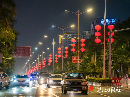 农历新春的脚步临近,湛江街头挂起了红彤彤的灯笼,街边亮起了造型各异的灯饰,这绚烂的景象,让人感受到浓浓的春节氛围。