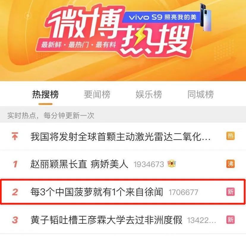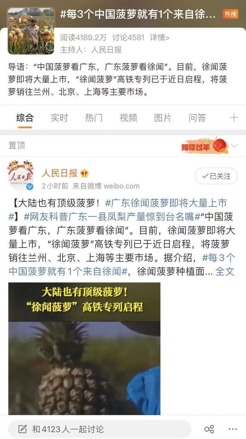 微博话题#每3个中国菠萝就有1个来自徐闻#