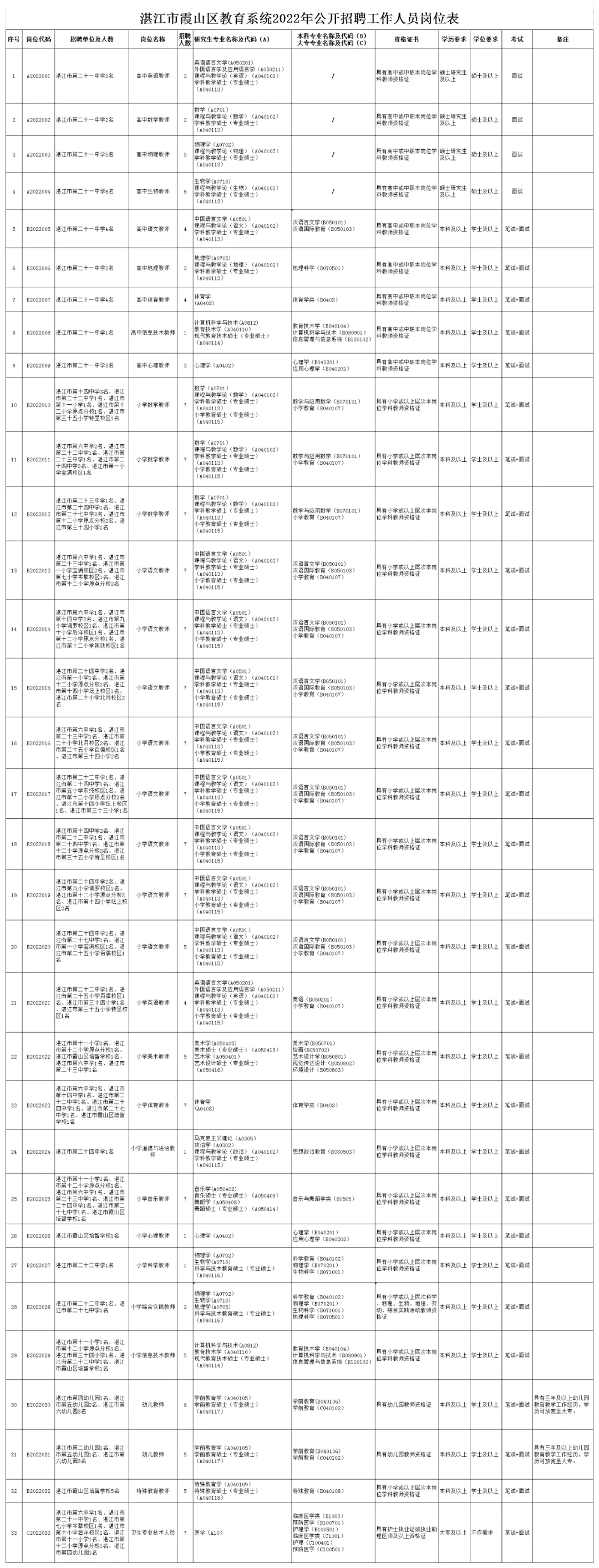 本次公开招聘高中教师研究生岗位(岗位代码为A2022001-A2022004)的考试采取面试方式进行,其余教师岗位和卫生专业技术人员岗位的考试采取“笔试+面试”的方式进行。