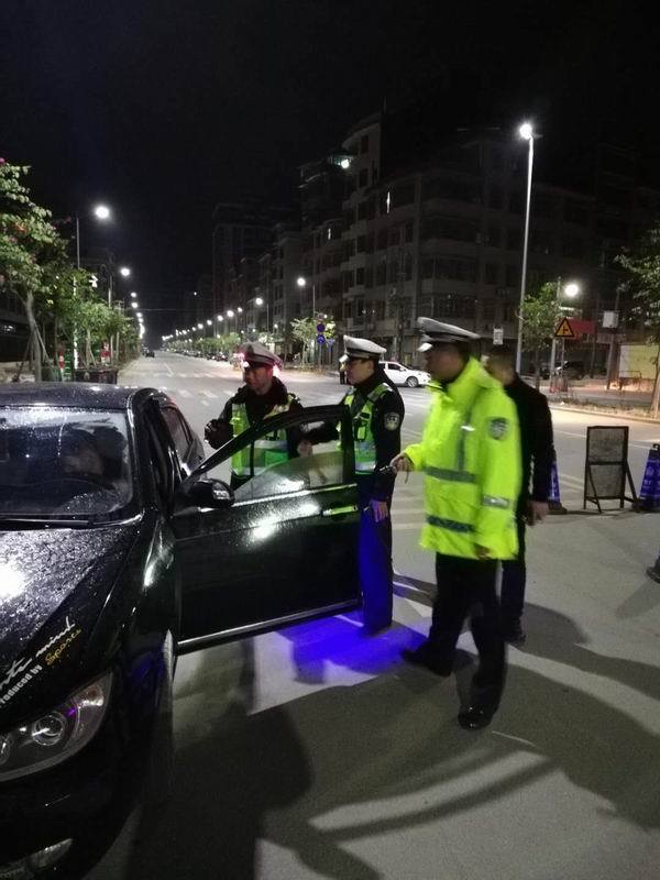 为进一步整治我县道路交通安全秩序,2月18日凌晨12:30分,新丰县公安局组织交警、巡警、治安、丰城派出所、西门派出所、东门派出所的成员开展夜查酒驾、醉驾、毒驾专项整治行动。行动由县局副局长陈赞泽作为总指挥靠前指挥部署,李常青、胡维俊、赵计其分别带领第一、二、三组成员在县城气象局路段、东门老郑路口和西门三小门前路段进行。