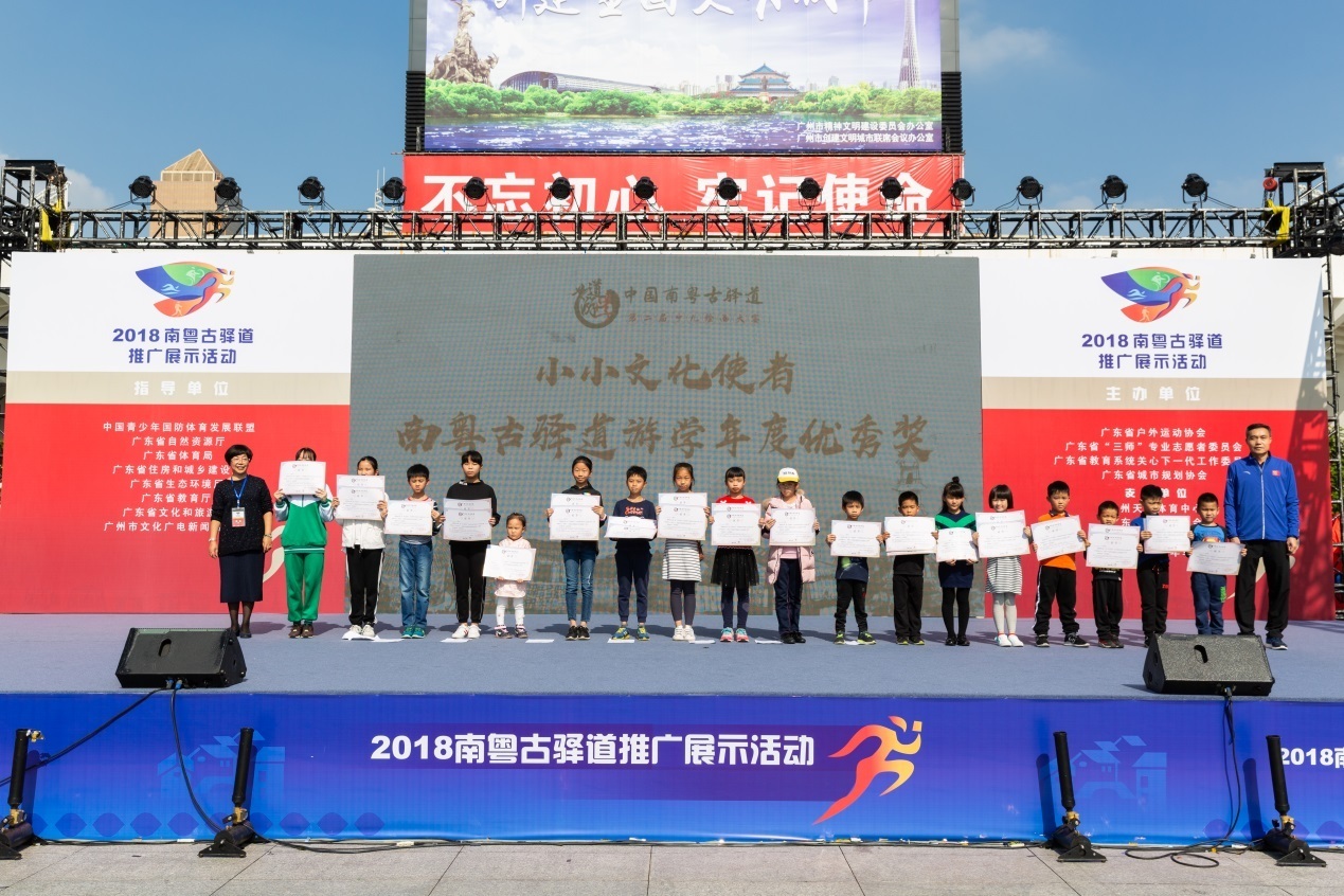 当日南粤古驿道推广展示活动正值省“三师”专业志愿者下乡服务四周年,现场领导嘉宾还为邹钢民、熊爱武、陈世军等新加入的志愿者颁发了证书,为南粤古驿道文创大赛、艺道游学少儿绘画大赛颁发年度大奖。文创大赛和少儿绘画大赛从筹备、启动、推进到深化,赛事影响日益扩大,使古驿道走进青少年儿童,走进寻常百姓家。
