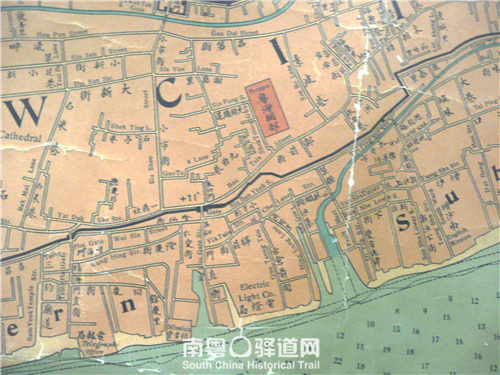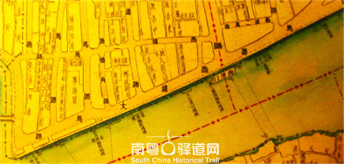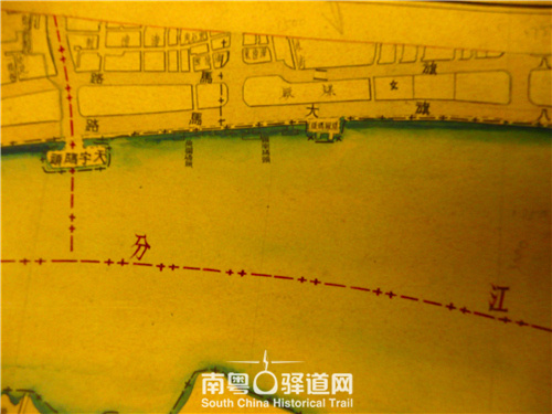 图为1907年历史地图粤海关的位置,处于历史上南面的“新城”内,出“五仙门”就可达珠江。