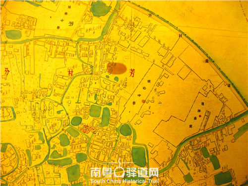 图为1937年测绘的历史地图,图上标注芳村的培英中学、明心书院的位置。