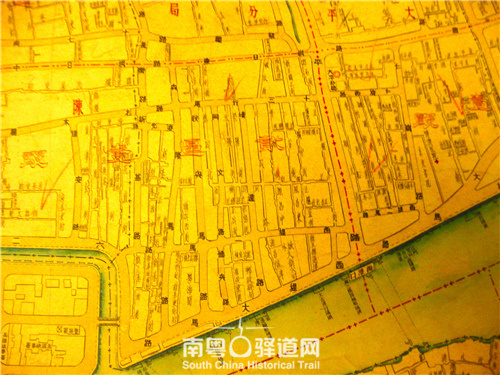 图为1937年的历史地图。与永汉路平行的就是昌兴路,图上最东北角是《新青年》等共产党主导刊物在广州的社址。1923年,自第21期起,《向导》从上海、北京迁至昌兴街28号。图上最西南角为第六甫和第七甫。
