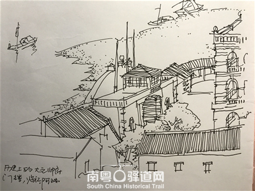 图为历史上的临江的大元帅府门楼,作者手绘。