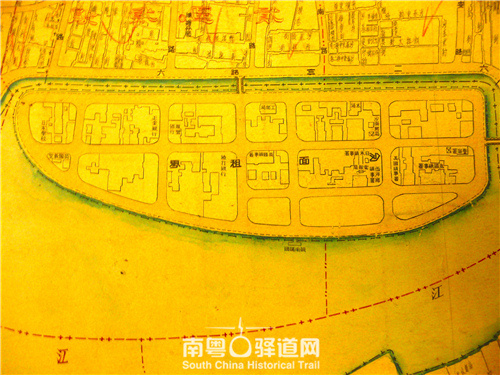 在长堤一带,有与粤港澳经商来往密切的一系列公司和医院,而粤港澳交通航运的码头也处于这一便利交通之处。历史地图反映长堤两处省港澳码头,东侧为太古码头,靖远路直通江边的省港澳码头。