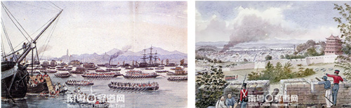 图为英国随队医生笔下的1841年5月24日的“广州之战”,绘制于19世纪,藏于英国国家海事博物馆。