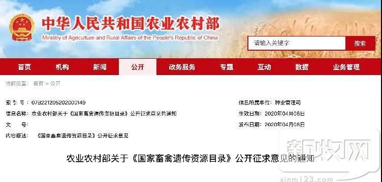 2020年4月8日,农业农村部在官网发布《国家畜禽遗传资源目录(征求意见稿)》(以下简称《目录》),公开向社会征求意见。《目录》包括家养的传统畜禽和特种畜禽共31种,其中27种可食用。列入《目录》的动物,意味着按照家畜家禽进行管理,可以用于食用等商业利用。