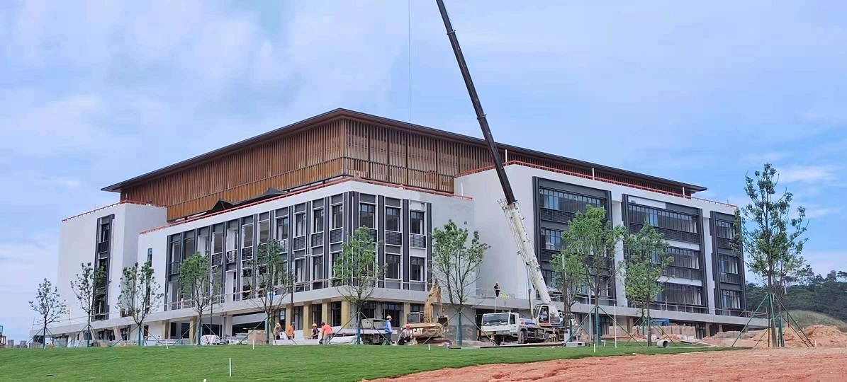 广东云浮中医药职业学院项目位于新兴县六祖镇十里村,总占地面积1125亩,计划总投资19.16亿元,建筑面积268560平方米(不含体育馆4000平方米),能满足在校生10000人的办学规模,其中,项目一期规划用地约395亩,立项批复总建筑面积130387平方米,总投资9.1亿元,工程建设20幢建筑单体。项目一期工程预计在本月15号完成建设。