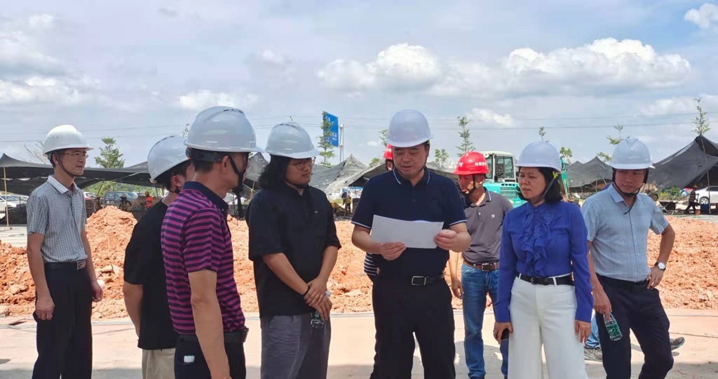 调研中,陈哲江一行来到广东云浮中医药职业学院项目施工现场,实地察看了项目的建设成效,仔细了解项目建设进展情况。针对存在的难点问题,陈哲江与相关负责人展开了讨论研究,并逐一予以解决。