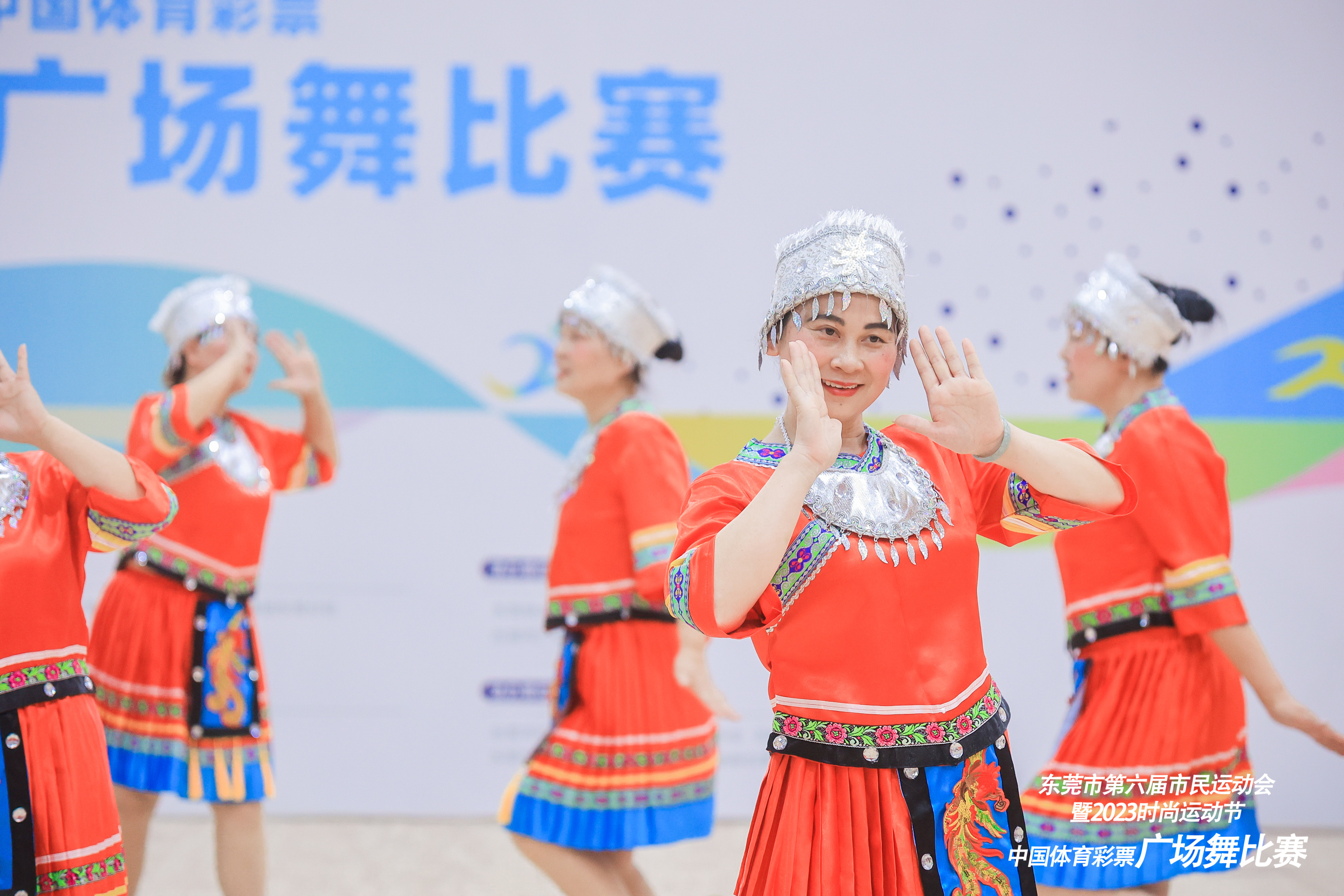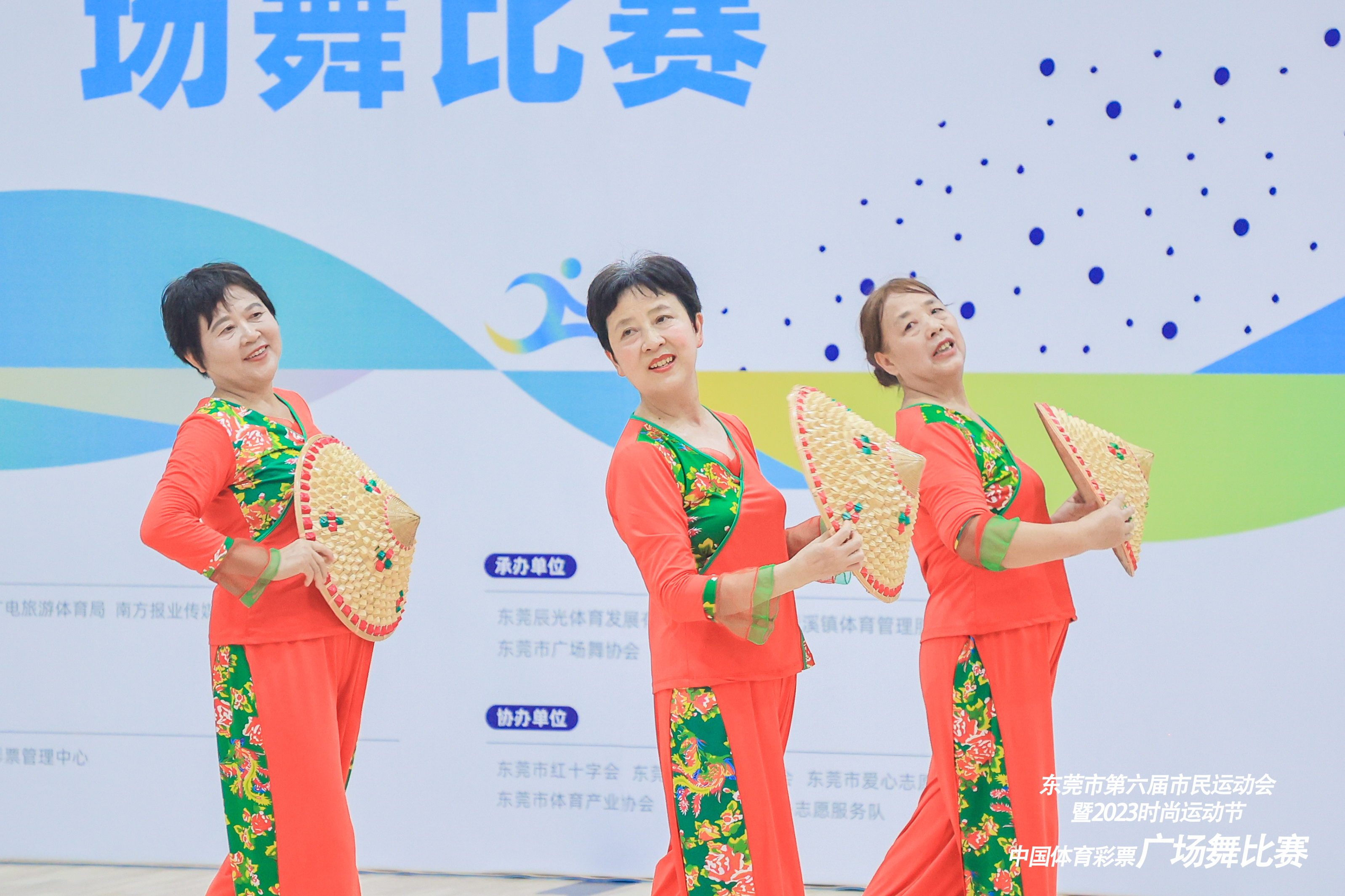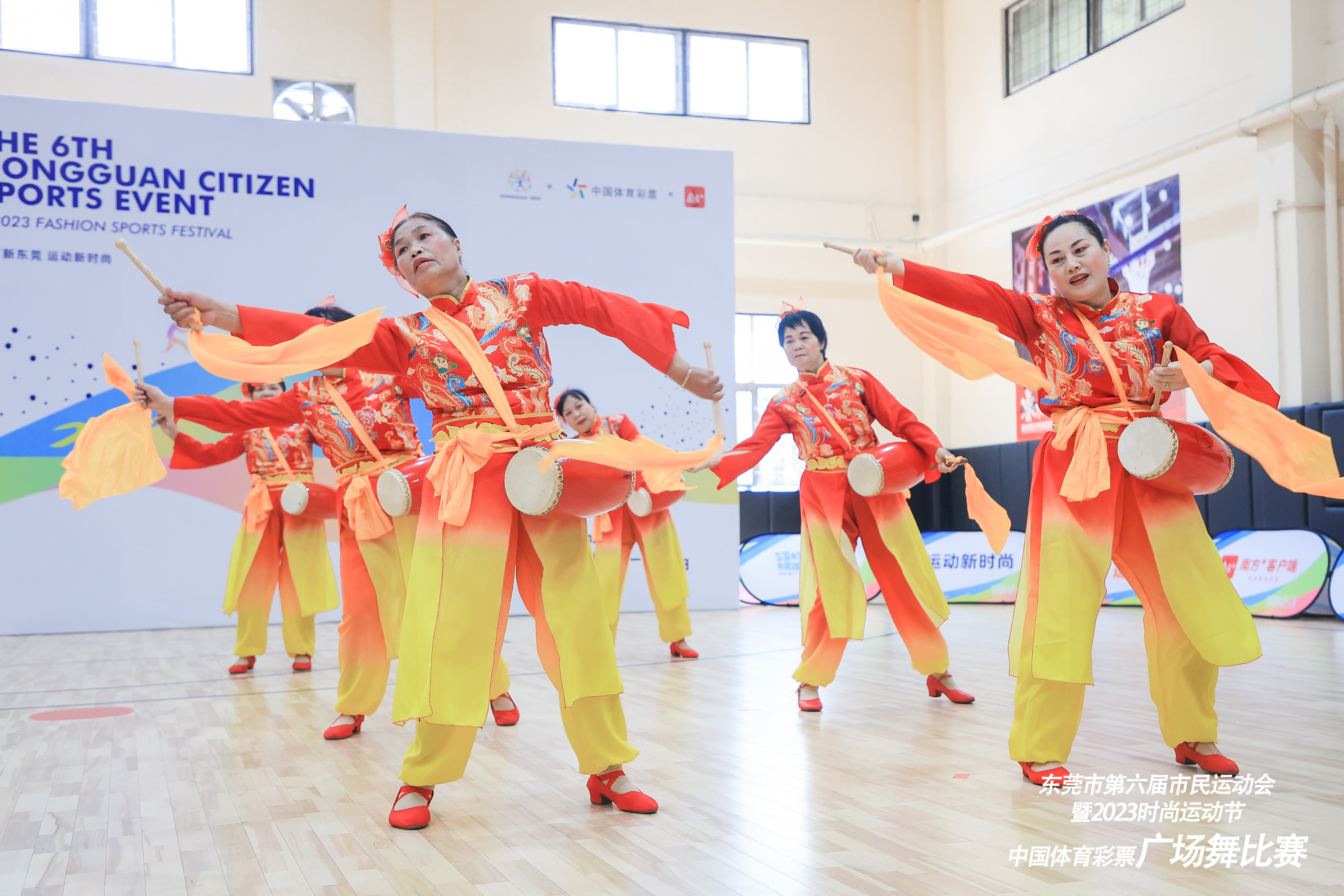 本届东莞市第六届市民运动会暨2023年时尚运动节(广场舞)比赛设置了青年组、中年组、老年组三个组别,各队伍自行编排节目参加比赛,不仅有《中国红》《欢唱中国梦》《我爱你中国》等歌舞展现对祖国山河的热爱,也有《我在茶乡等你来》《江西姑娘》等极具地方风情的表演。