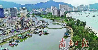 如今,再次走进巽寮渔业村,升级改造完成的沿港观光路,柏油路面、大理石步道、石柱铁链栏杆,整条道路看起来非常漂亮、大气,与其相连的休闲木栈道,更是一处独特的岸线景观。每到晚上,夜灯初上,沿港观光路和渔业桥的景观显得更加美丽动人,成为村民和游客最喜欢的休憩场地。