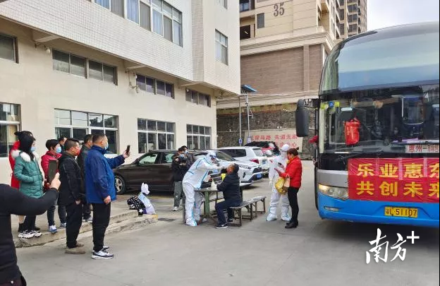 据悉,为了让外地工人早日返岗,惠东县人社局除了派发专车接送工人外,还将统一安排返岗工人体温测量、核酸检测,开通应对疫情职工线上咨询和心理筛查服务,实现返岗工人从“家门口”到“厂门口”的无缝对接,为企业和员工解烦忧。