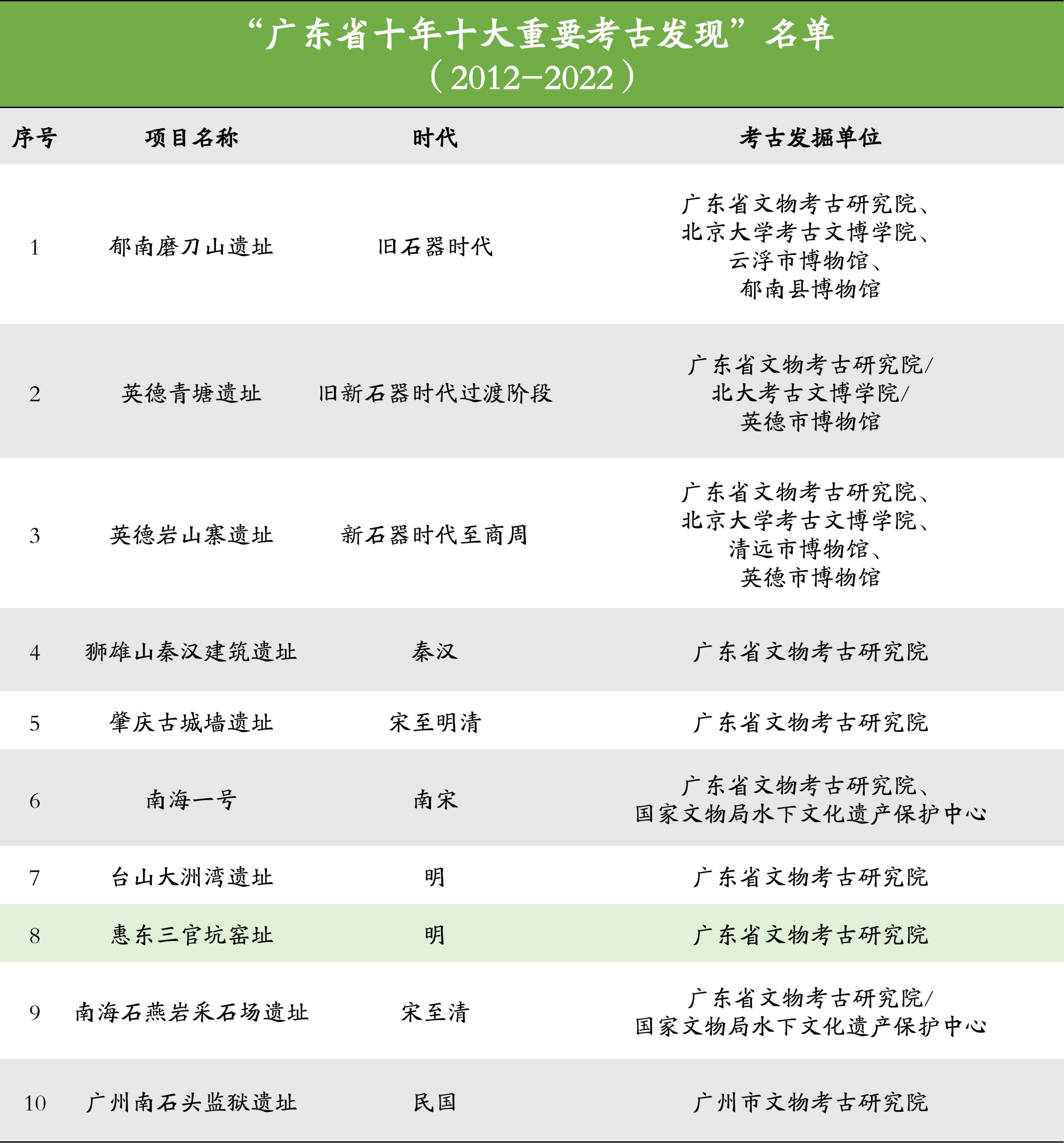 近日,“广东省十年十大重要考古发现”名单正式公布,为海上丝绸之路研究提供重要科学依据的惠东三官坑窑址入选。