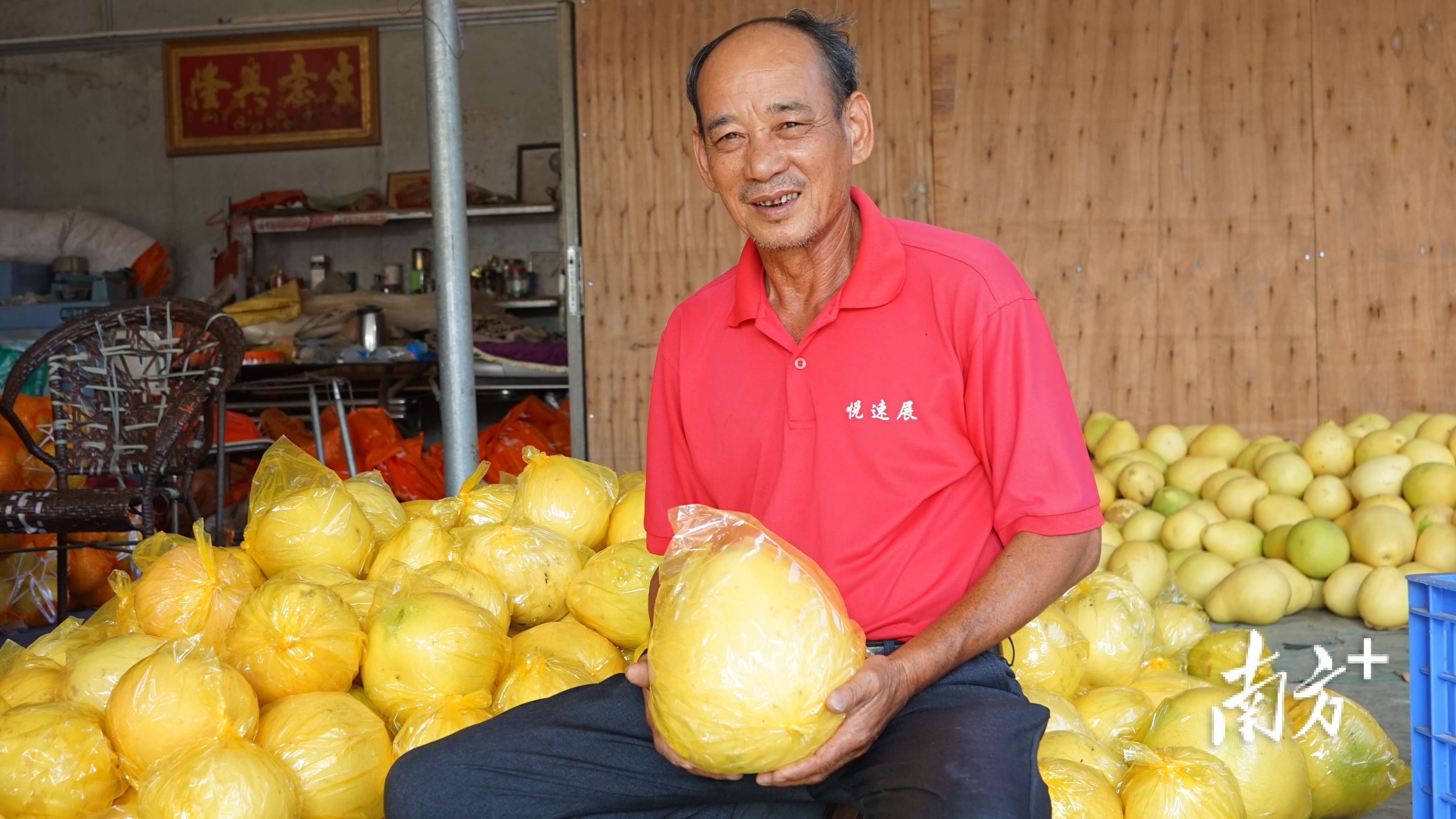 “这段时间卖了很多,客人都是开车来现场提货,有广州的、深圳龙岗的。”郭里今年64岁,种了1500亩柚子,今年柚园产量60万斤左右。家里除了儿媳妇和孙子,一家人都帮他弄柚子。郭里告诉记者,每年他的柚子销售额在一两百万元左右,是家里重要的经济来源。