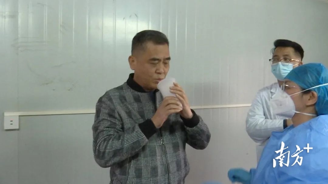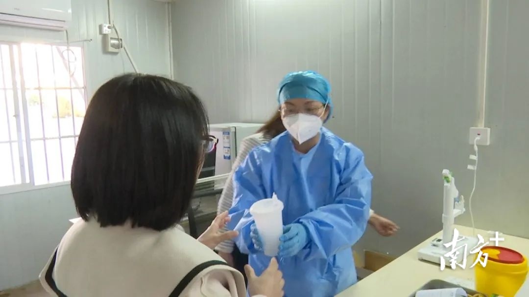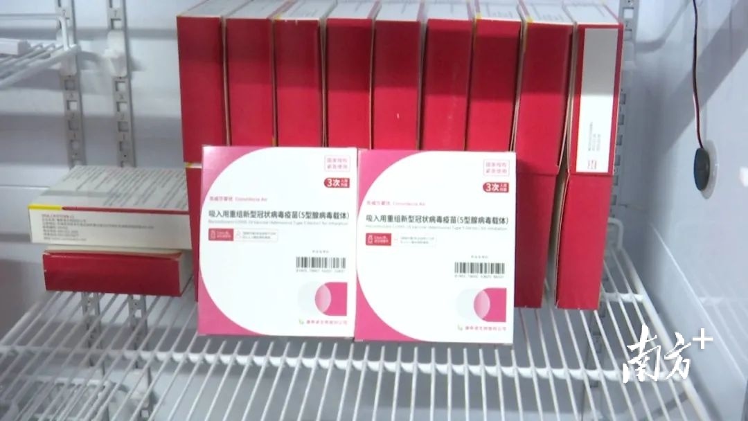 在惠东县大岭鞋城新冠疫苗临时接种点,第一批次的吸入式新冠疫苗刚刚送达。现场,专业人士正教授临时接种点医生护士如何使用新的吸入式新冠疫苗。