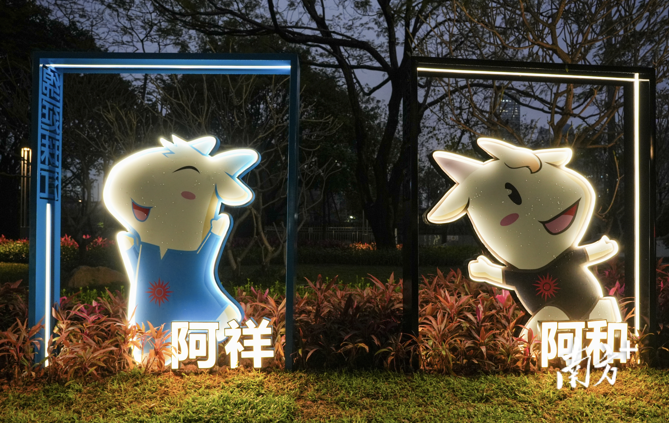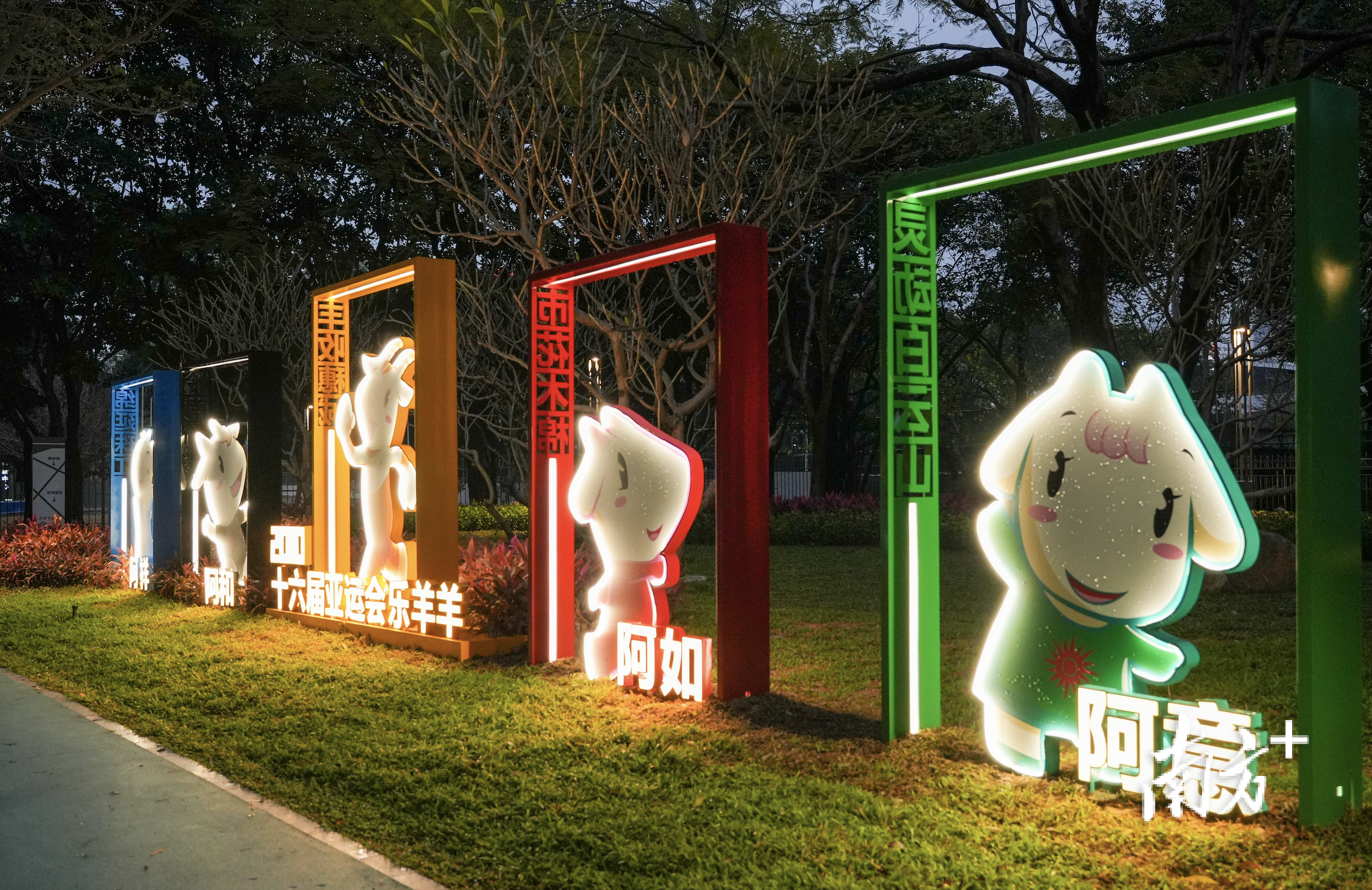 西北角口袋公园布置了广州承办的全国运动会和亚洲运动会吉祥物小品,主题与全运和亚运健儿们为冠军梦敢于拼搏的精神相契合。包括今年11月即将举办的第十五届全国运动会吉祥物喜洋洋、乐融融以及十五运倒计时牌,还有1987年举办的六运会吉祥物阳阳、2001年举办的九运会吉祥物威威、2010年举办的第十六届亚运会吉祥物“祥和如意乐羊羊”。