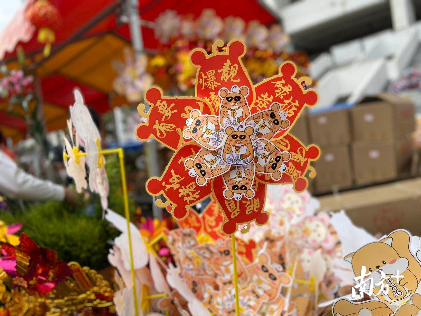 走进花市,牌楼上五朵盛开的木棉花中融入猎德鼓、龙舟、珠江新城标志性建筑等文化元素,红黄色彩喜气洋洋,“福鼠迎春”卡通雕塑憨态可掬,喜迎各方宾客前来“广州过年,花城看花”。