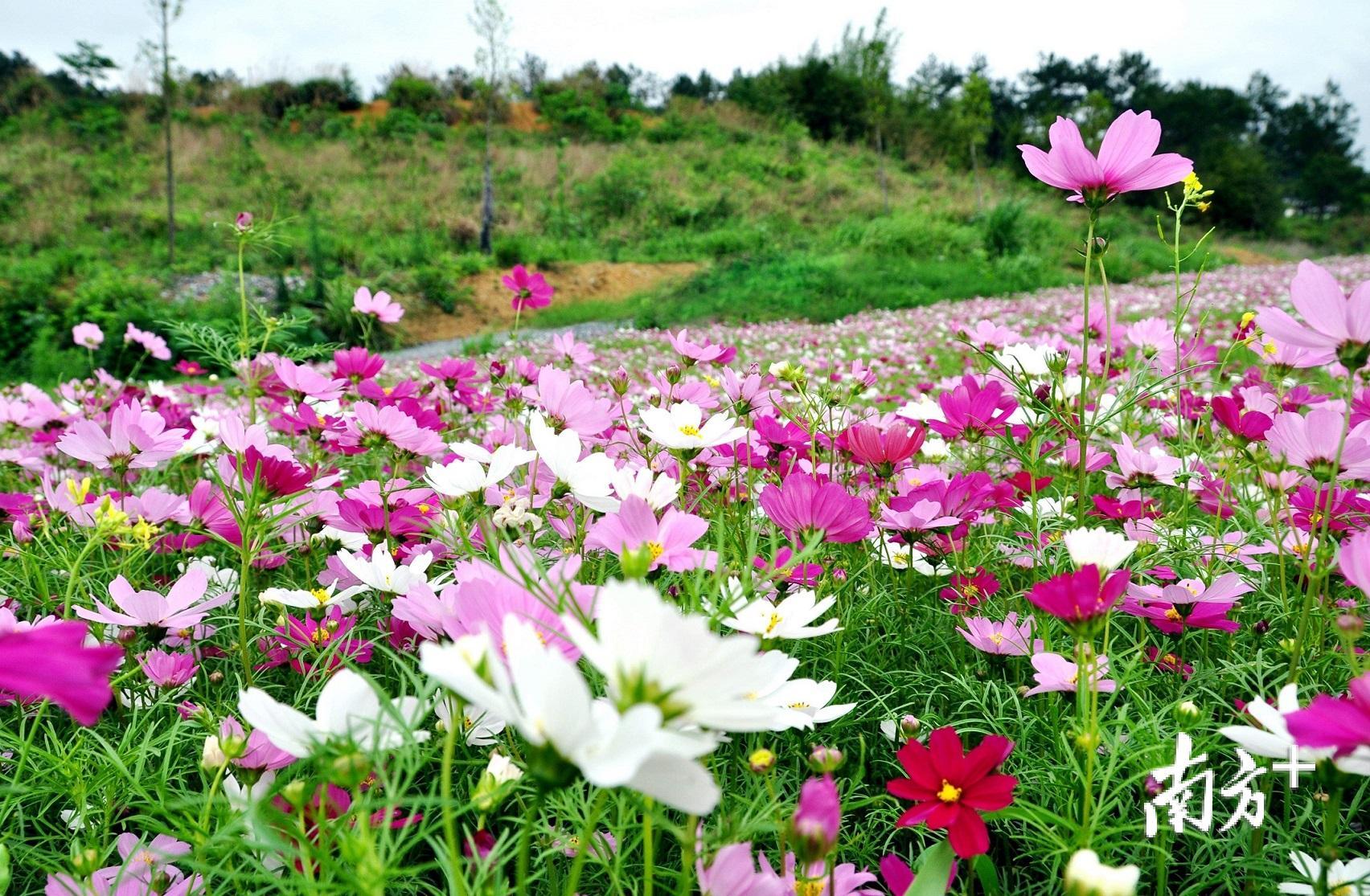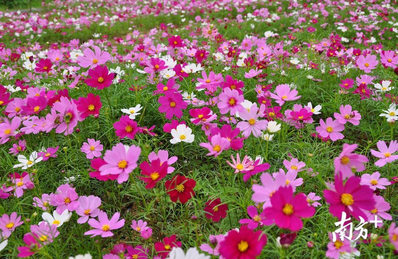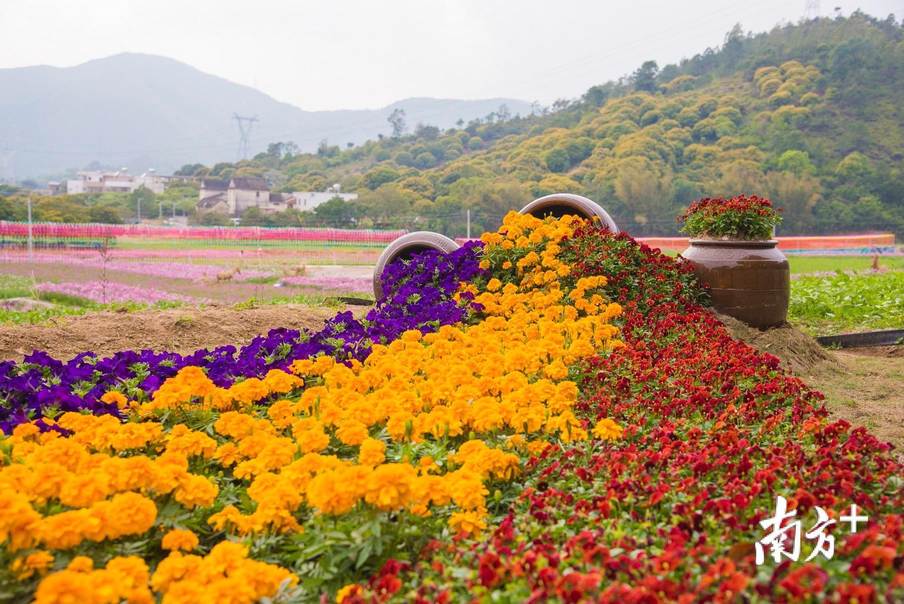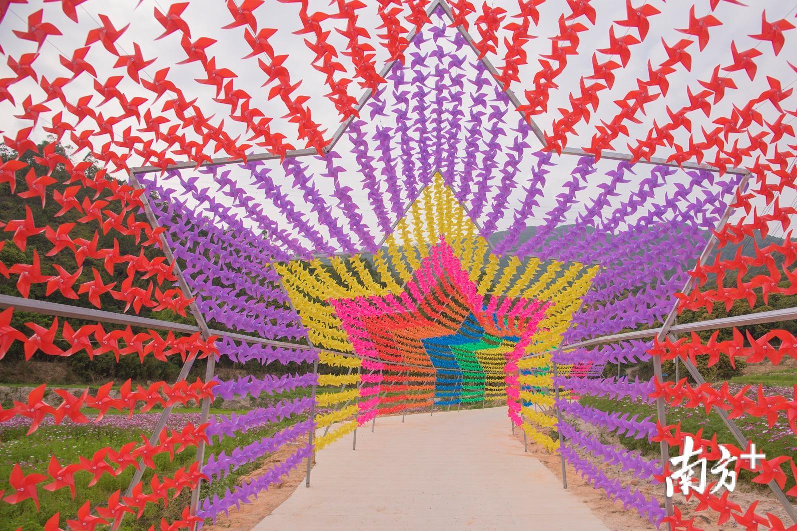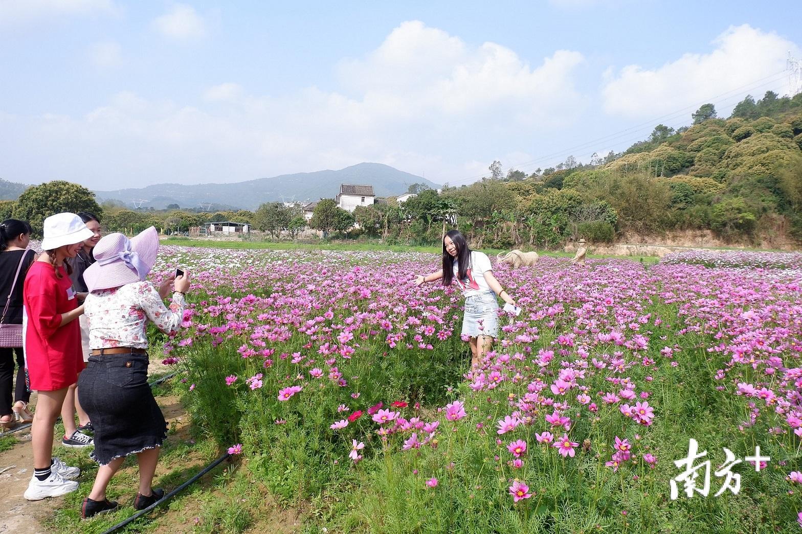 今年的清明假期,因为一片面积达200亩的花海绿野,惠州市惠阳区秋长街道周田村在微信朋友圈“刷屏”:一片片格桑花,一排排七彩风车,一个个稻草玩偶,一朵朵五颜六色点缀在乡野绿地,让这片刚刚开放却尚未“取名”的花海迎来了一波波游客赏花的小高峰。