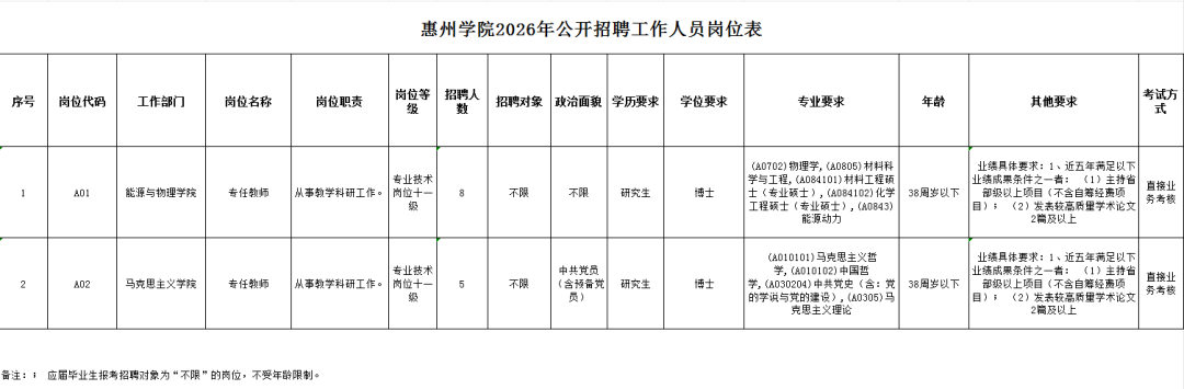 惠州学院公开招聘