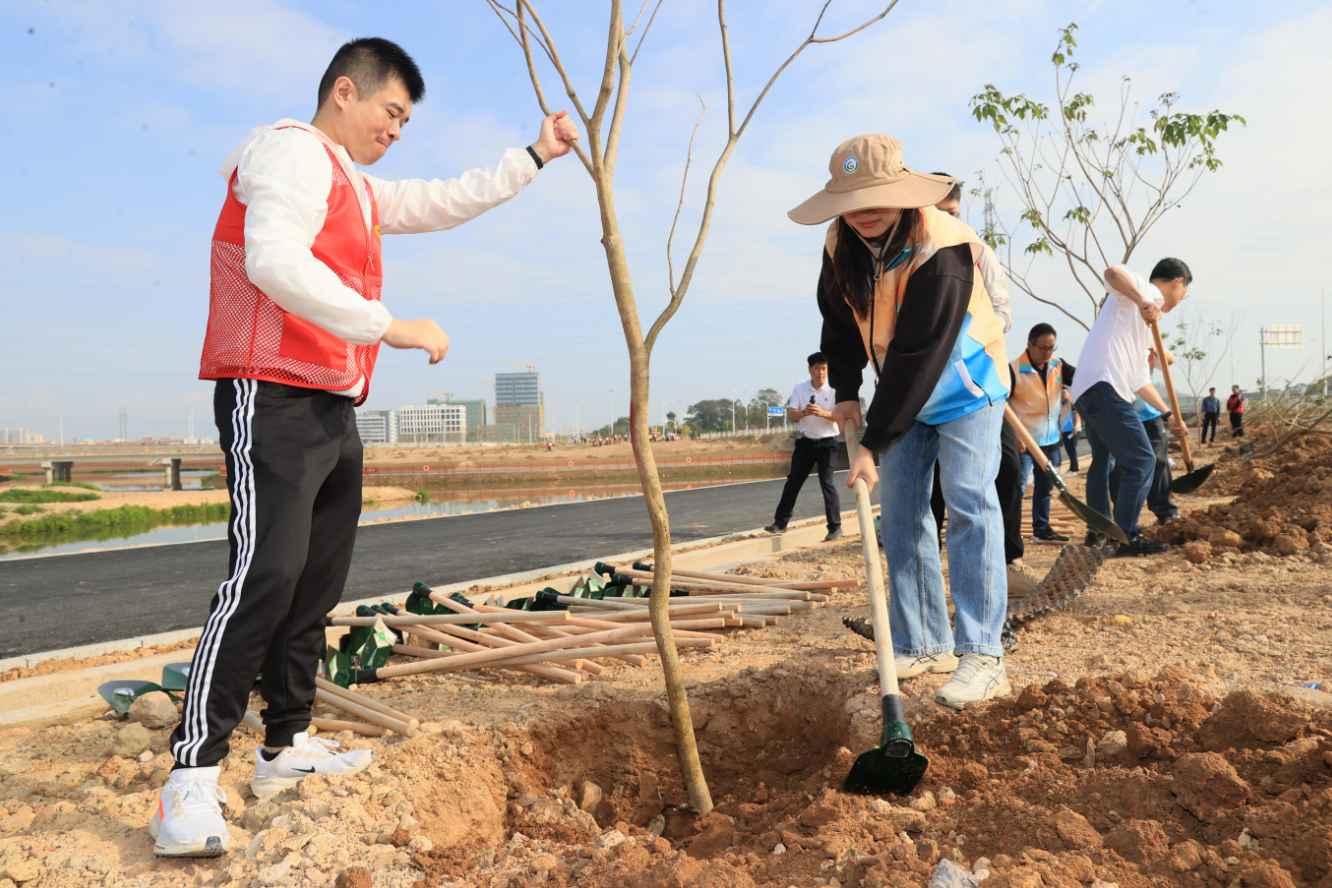 “这是我第三次参加植树志愿服务活动,今天主要负责浇水和培土等工作,同时做好现场引导和服务工作。”来自惠州市鑫慧城实业发展有限公司的志愿者丰硕表示,在滋养企业发展的这片土地上种下新苗,既美化了园区环境,又进一步提升了园区的招商引资吸引力,意义非凡。