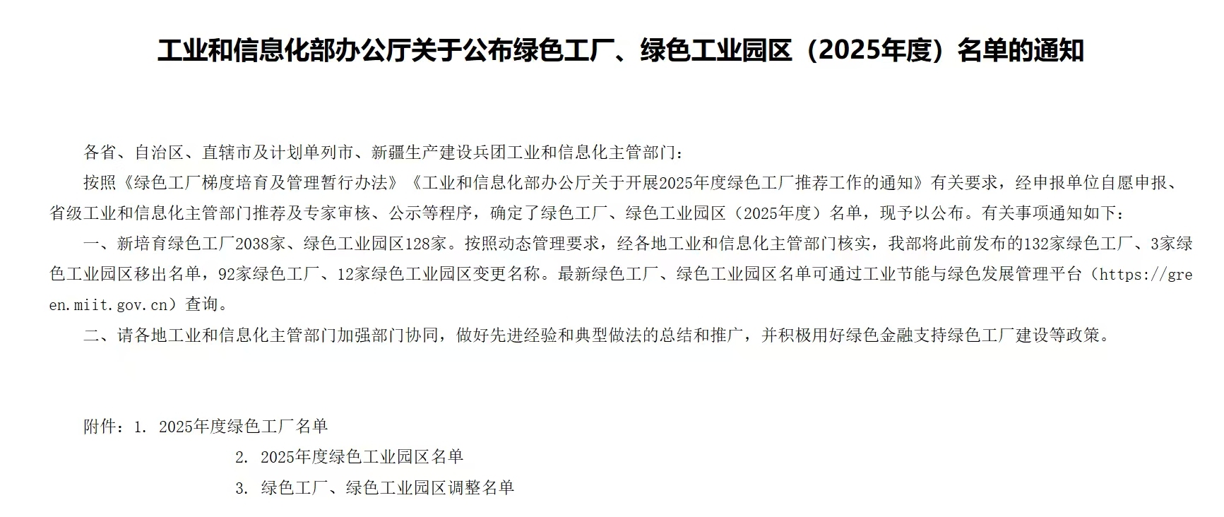 近日,工业和信息化部印发《工业和信息化部办公厅关于公布绿色工厂、绿色工业园区(2025年度)名单的通知》。其中,惠州市19家企业成功入选绿色工厂。