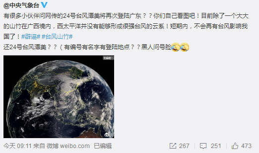 今天上午,中央气象台通过微博发辟谣信息:短期内,不会再有台风影响我国!